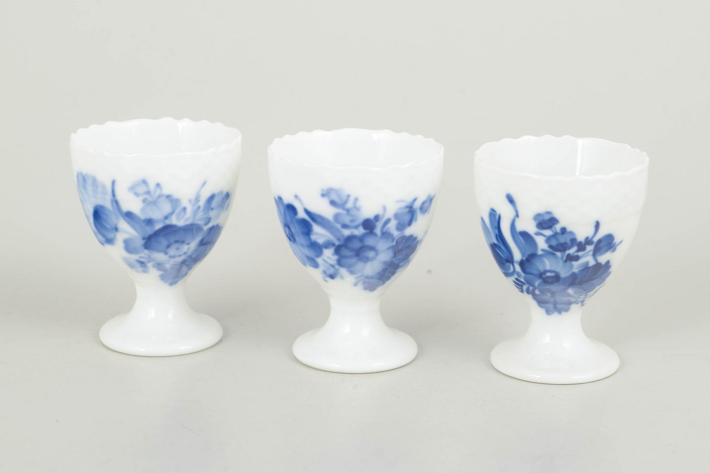 Royal Copenhagen, Blå Blomst Svejset sæt af tre æggebægre.Beschreibung: