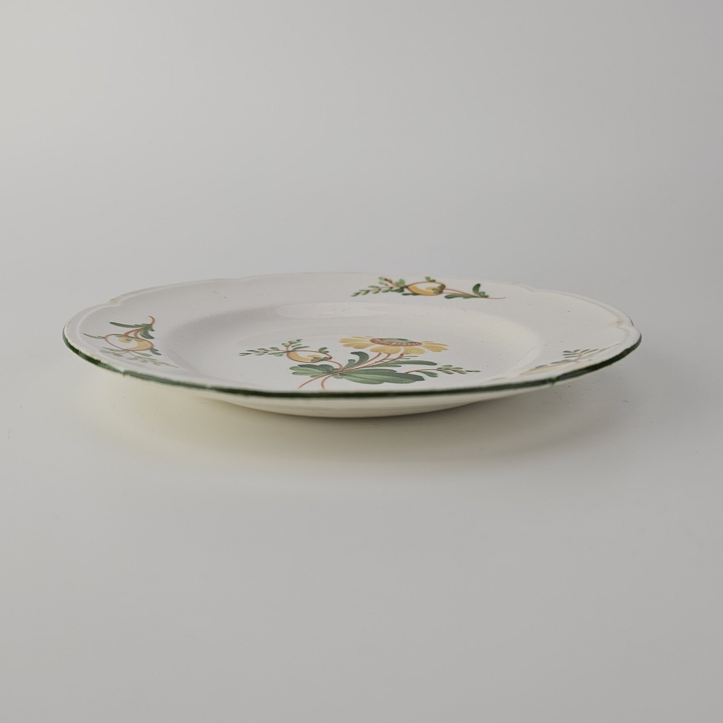 Flad kagetallerken i fajance fra stellet Maj fremstillet i perioden 1941-1966.Formgiver Nils Thorsson