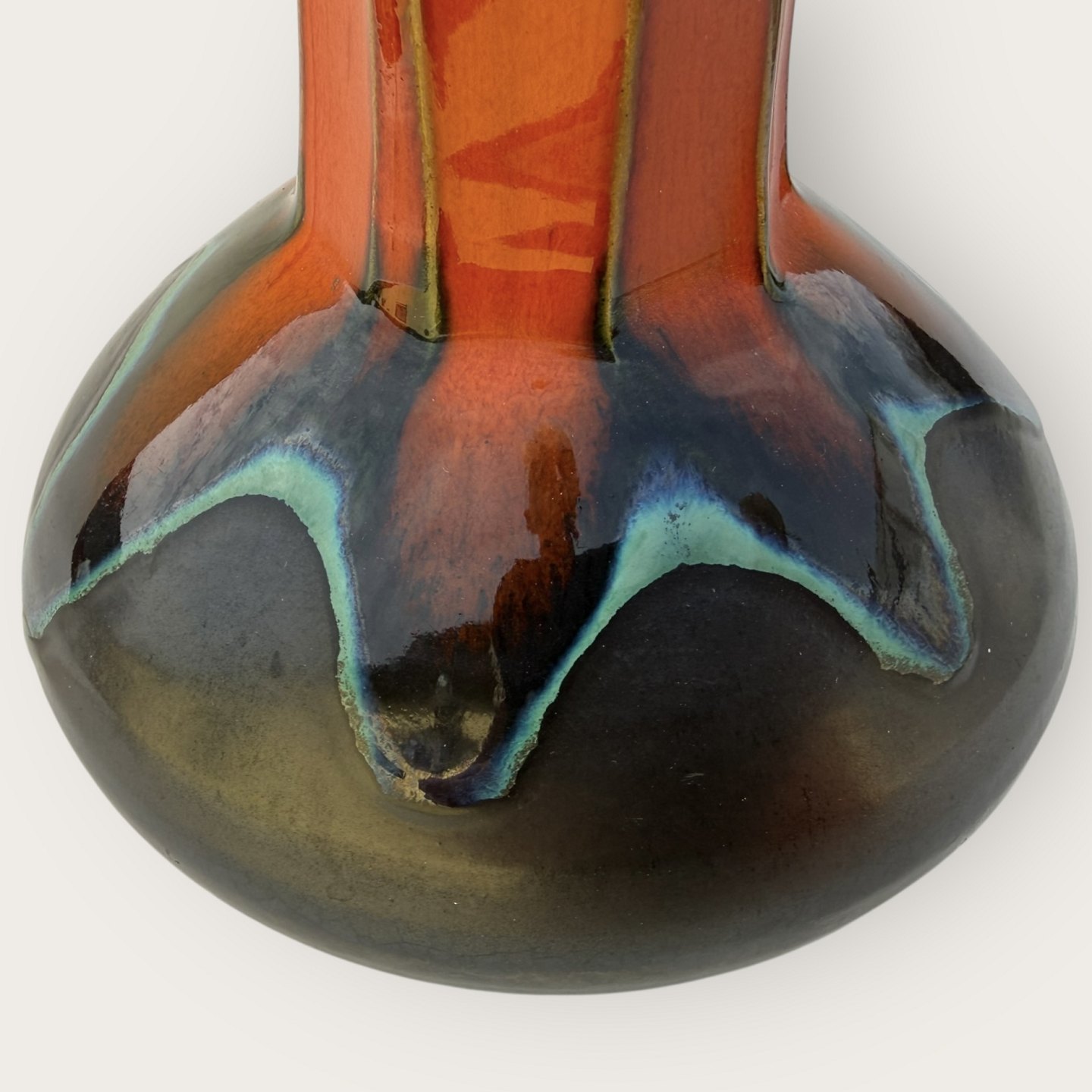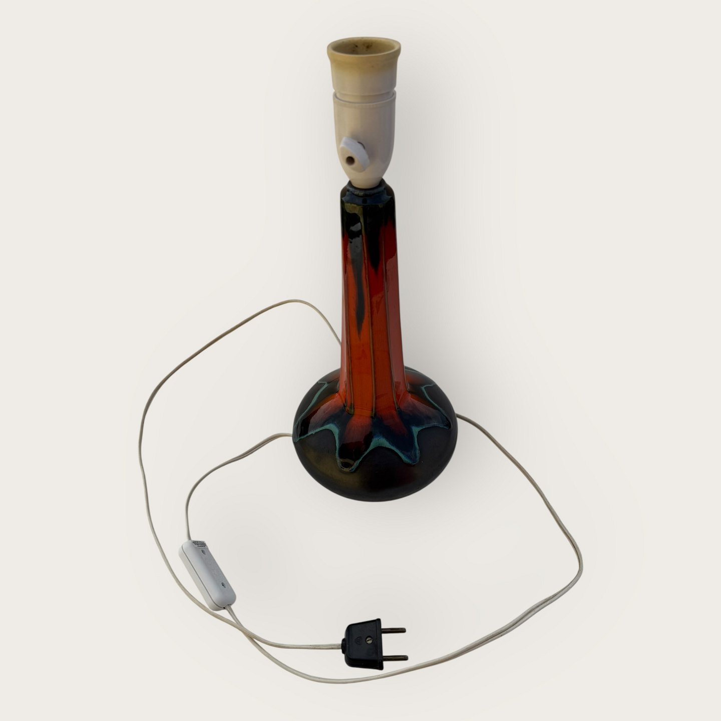 Ernst Faxe, Retro-Tischleuchte mit kräftiger orangefarbener Glasur, nicht signiert, Höhe mit Fassung ca. 36 cm *Guter Zustand*Lager: 1