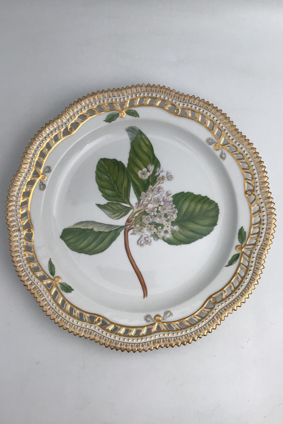 Royal Copenhagen Flora Danica Tallerken med gennembrudt kant No. 20/3526Måler 27cm / 10.63 inch. 1. Sort Latinsk tekst: Sorbus Aria Crantz