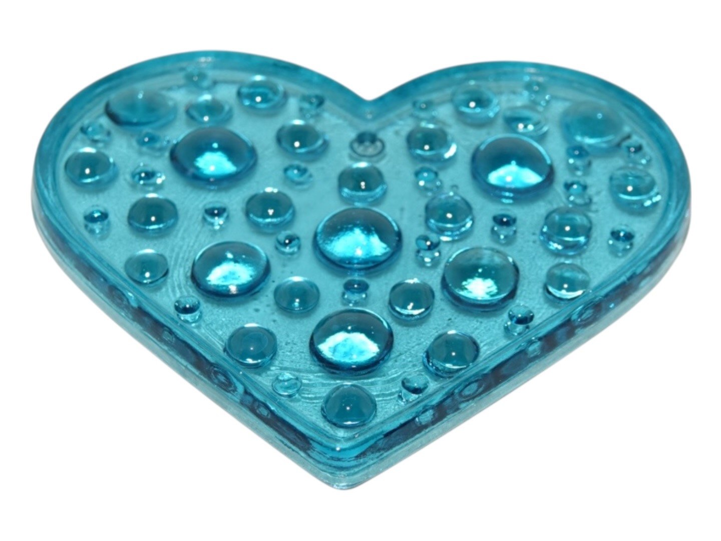Glasværk fra Sverige, solfanger i form af lyseblåt hjerte fra 1970'erne eller 1980'erne.