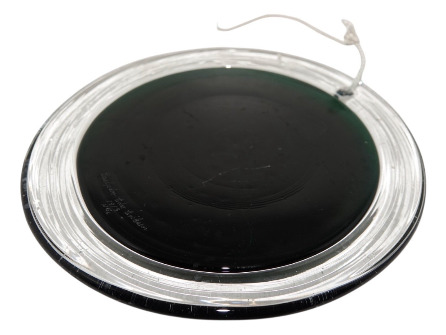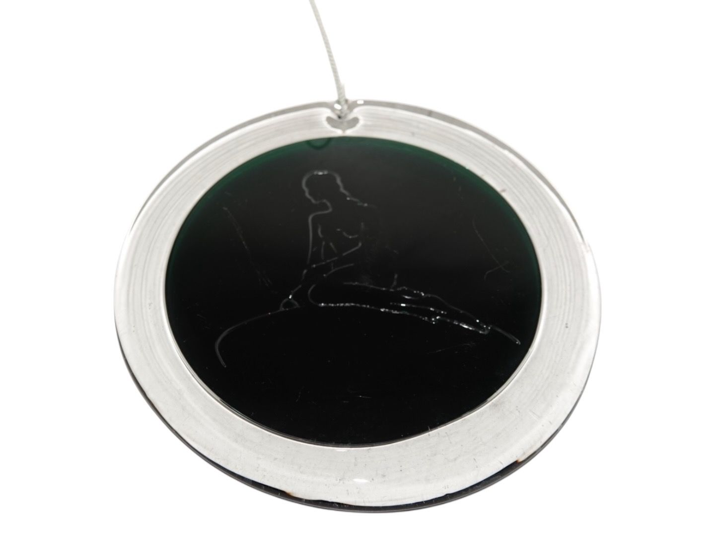 Holmegaard solfanger i klart og mørkegrønt glas med Den Lille Havfrue.Designet af Ole Winther i 1976.