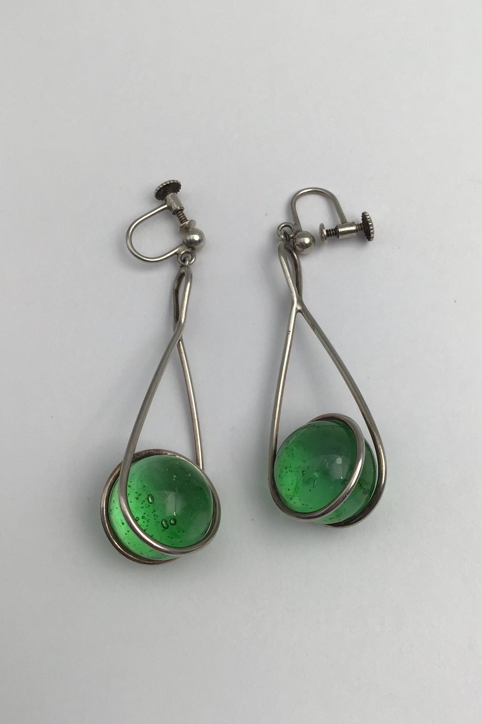 Bent Knudsen Sterling Sølv Øreringe (Skruer) Grønne Glasperler