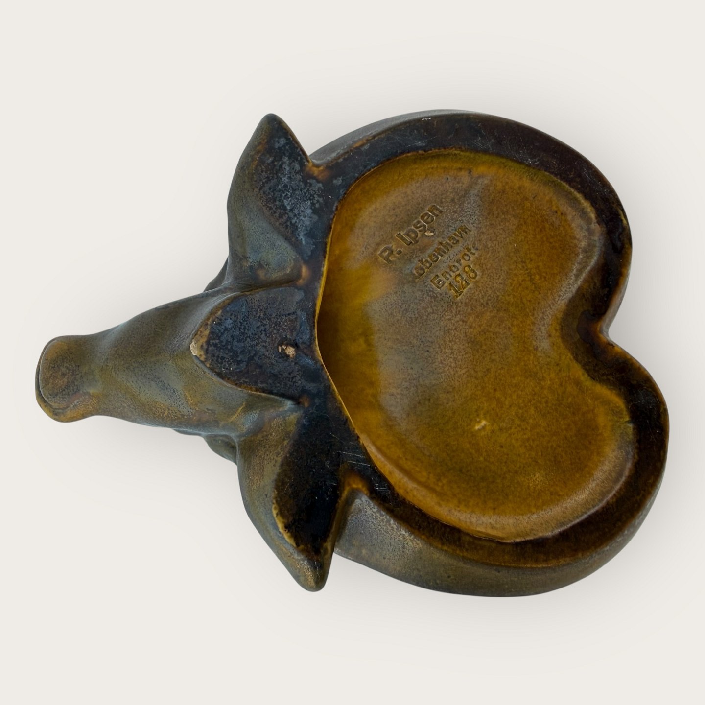 P. Ipsen / Ipsens Witwe, Schale mit Wasserbüffel, Maße: 17 x 13 cm, signiert: P. Ipsen, Kopenhagen, 128 *Guter Zustand*Lager: 1