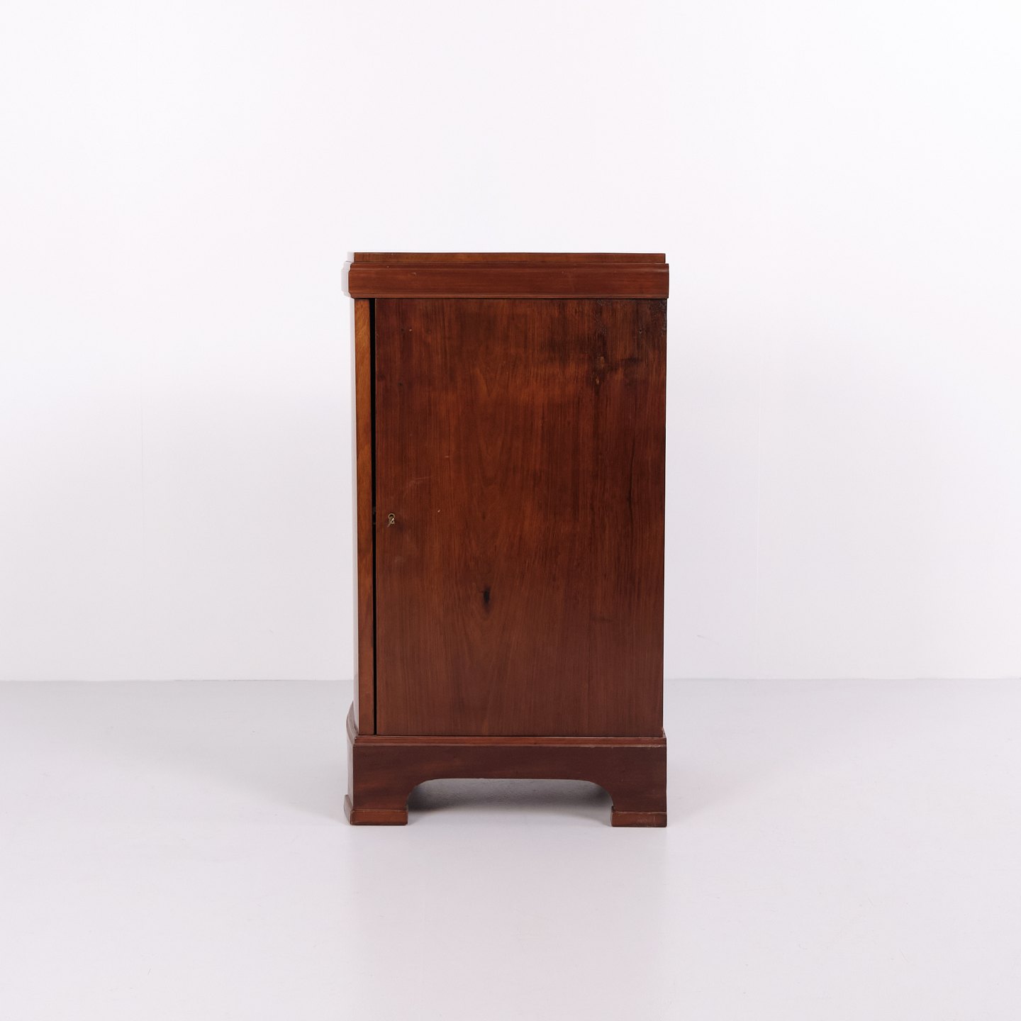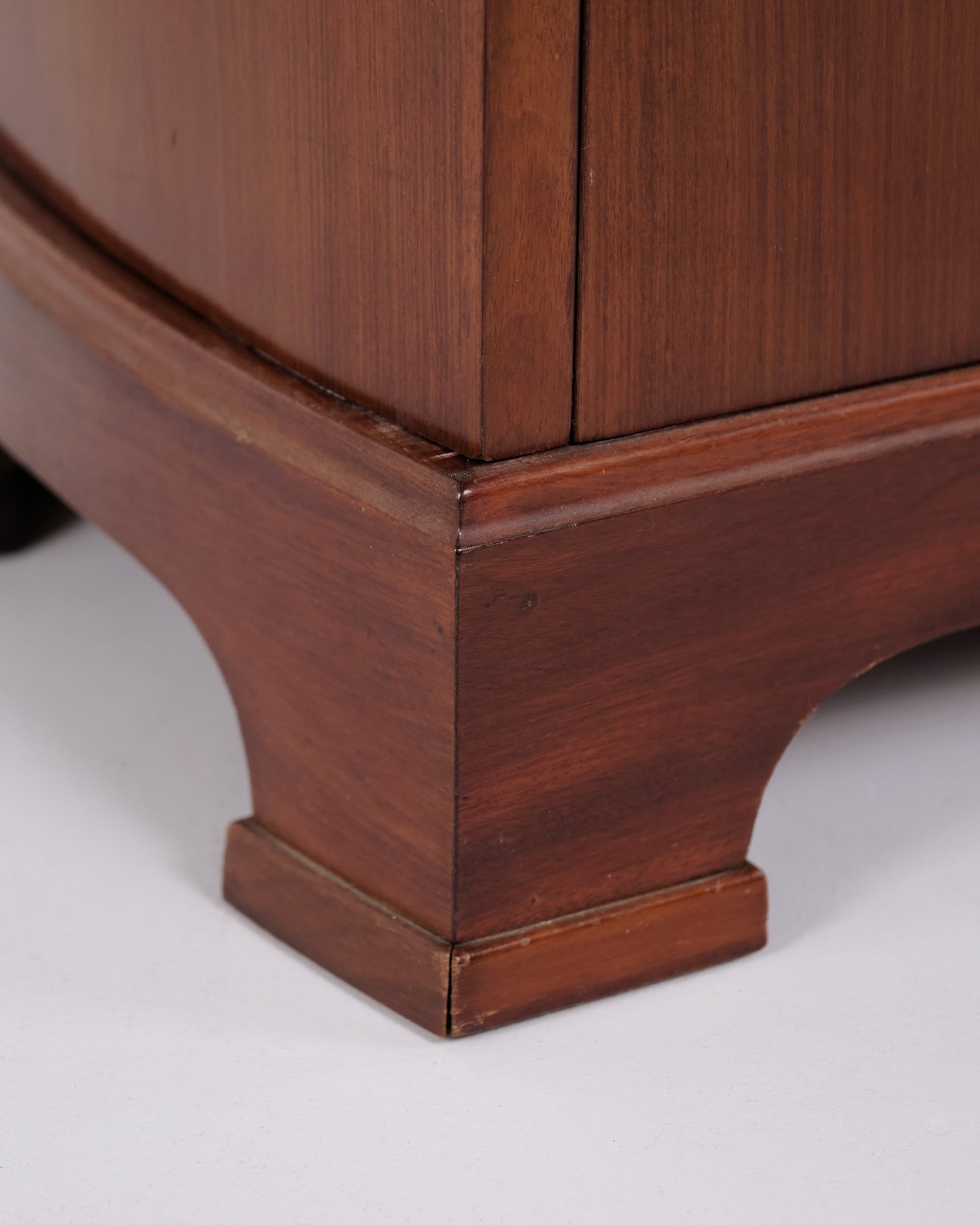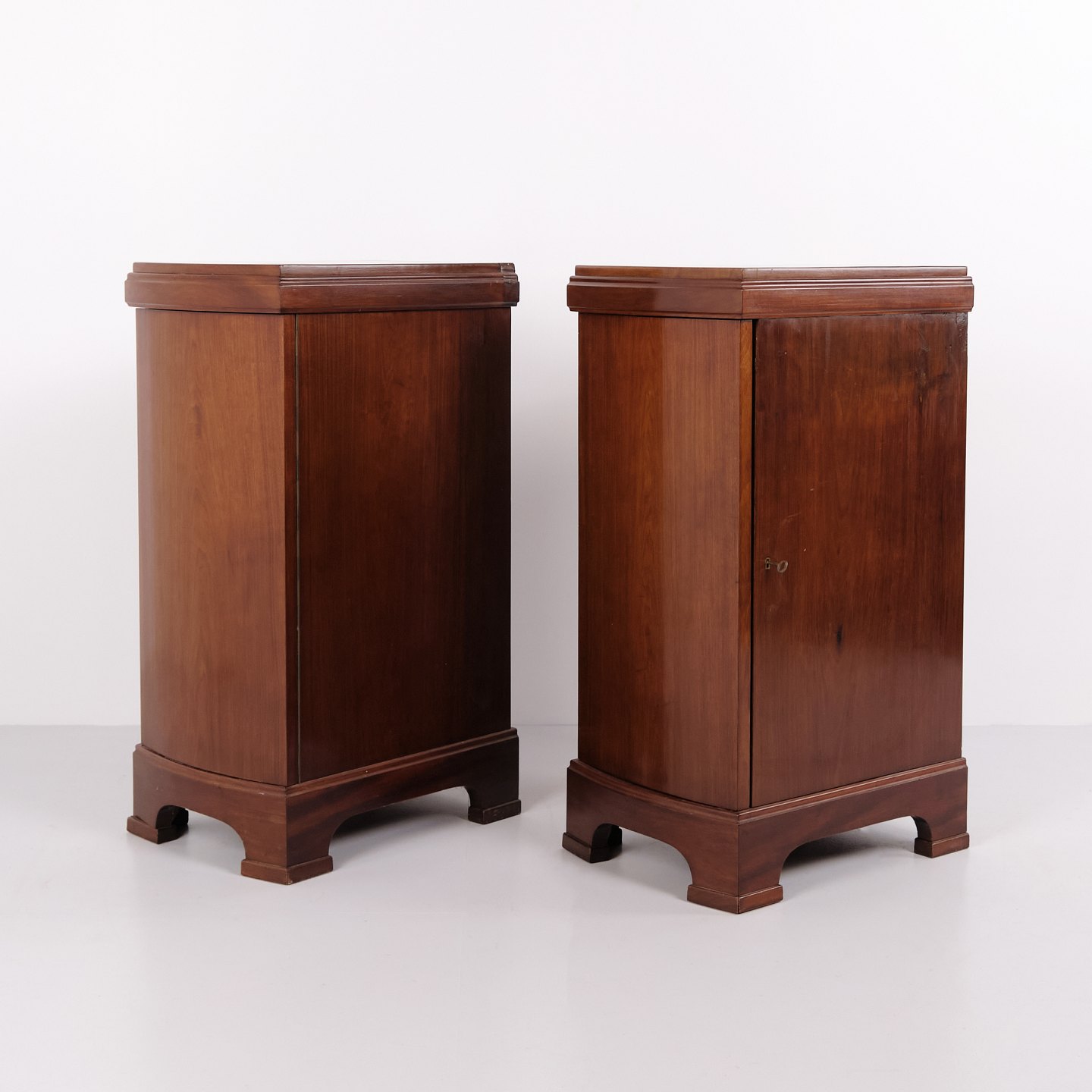 Ein Paar Nachttische aus Mahagoni aus den 1920er Jahren mit geschwungener Front und handpolierter Oberfläche. Klassisches Design mit elegantem Ausdruck.— Herkunft: Europa