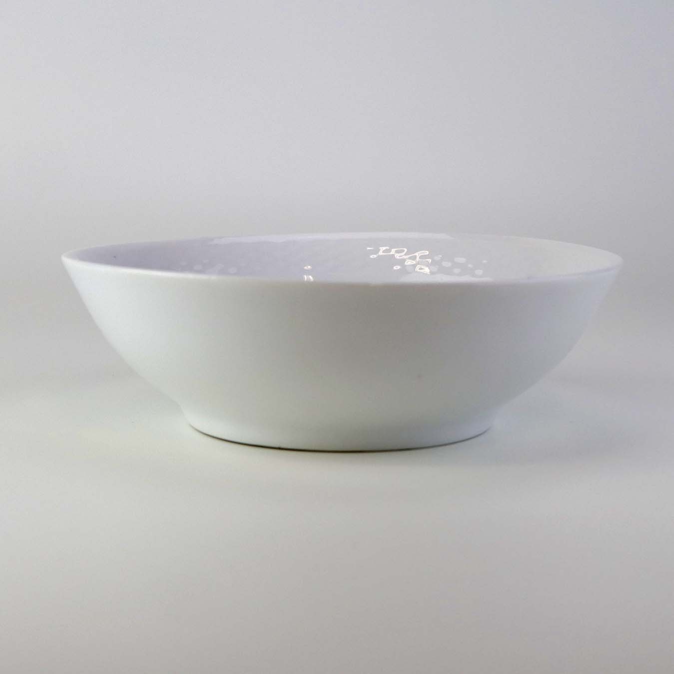 Fremstår med to prikker under glasuren samt ujævn glasur.