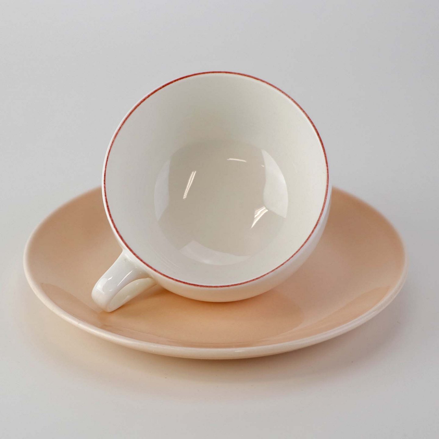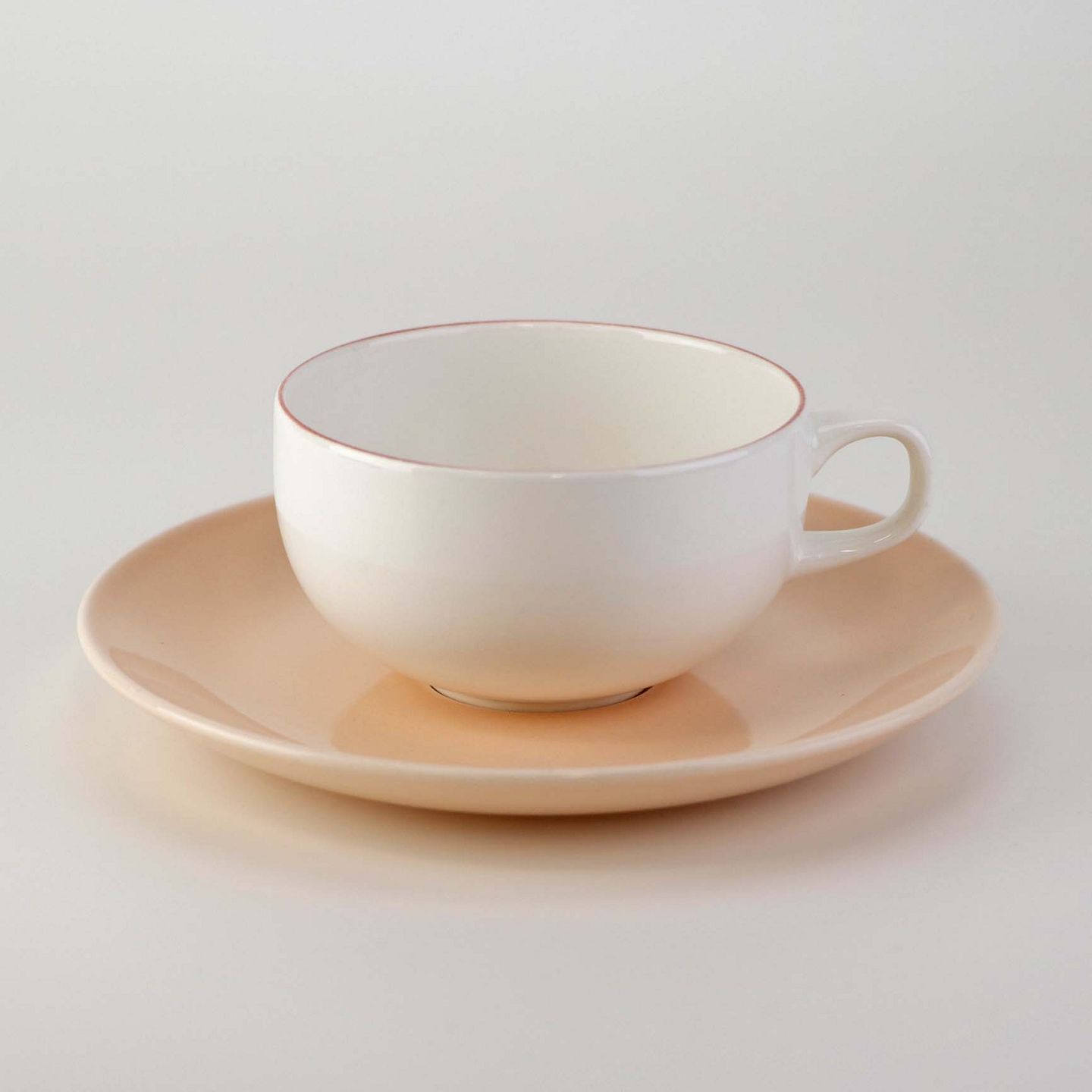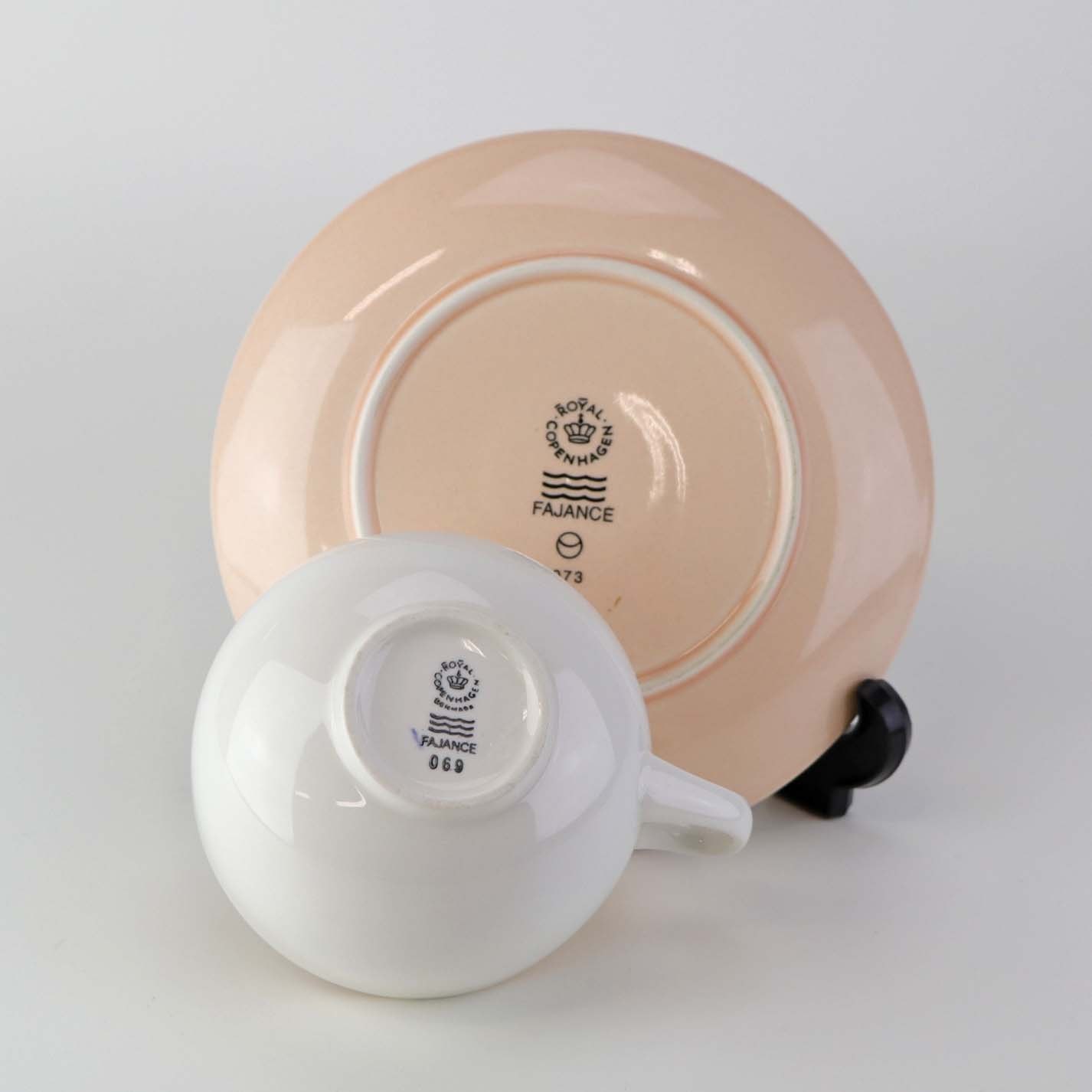 Lille morgenkop i fajance med rosa underkop fra stellet 4 All seasons nr. 069 og 073Produceret af Royal Copenhagen fajance