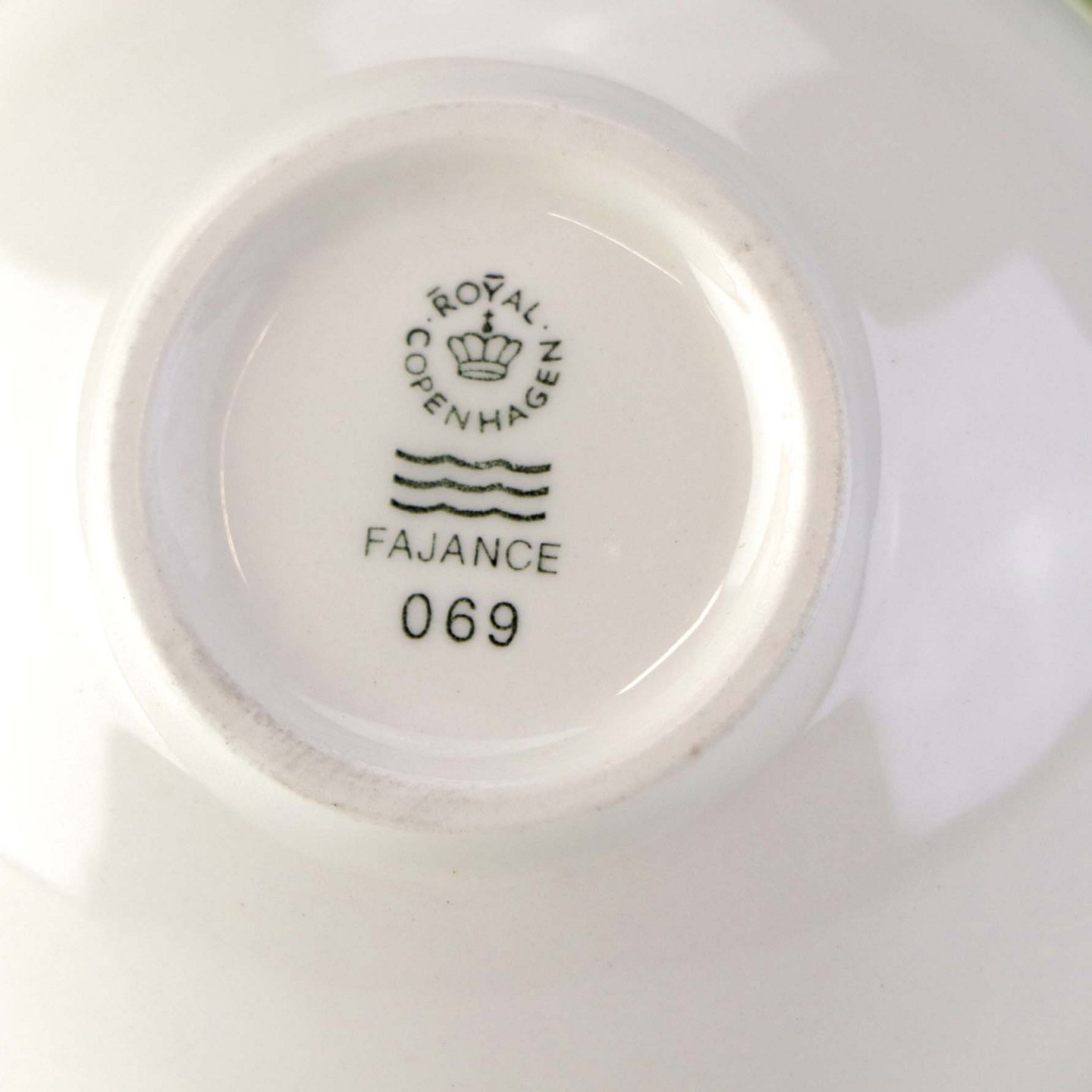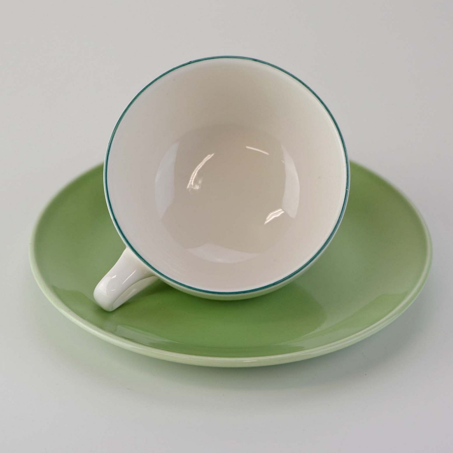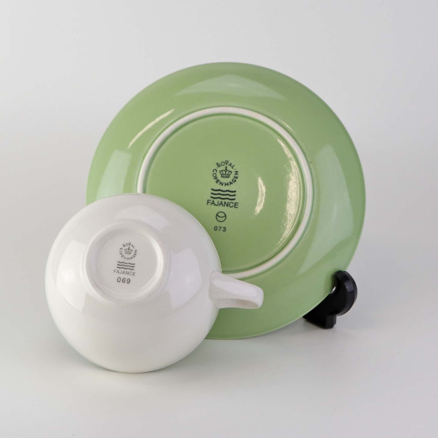 Lille morgenkop i fajance med grøn underkop fra stellet 4 All seasons nr. 069 og 073Produceret af Royal Copenhagen fajance