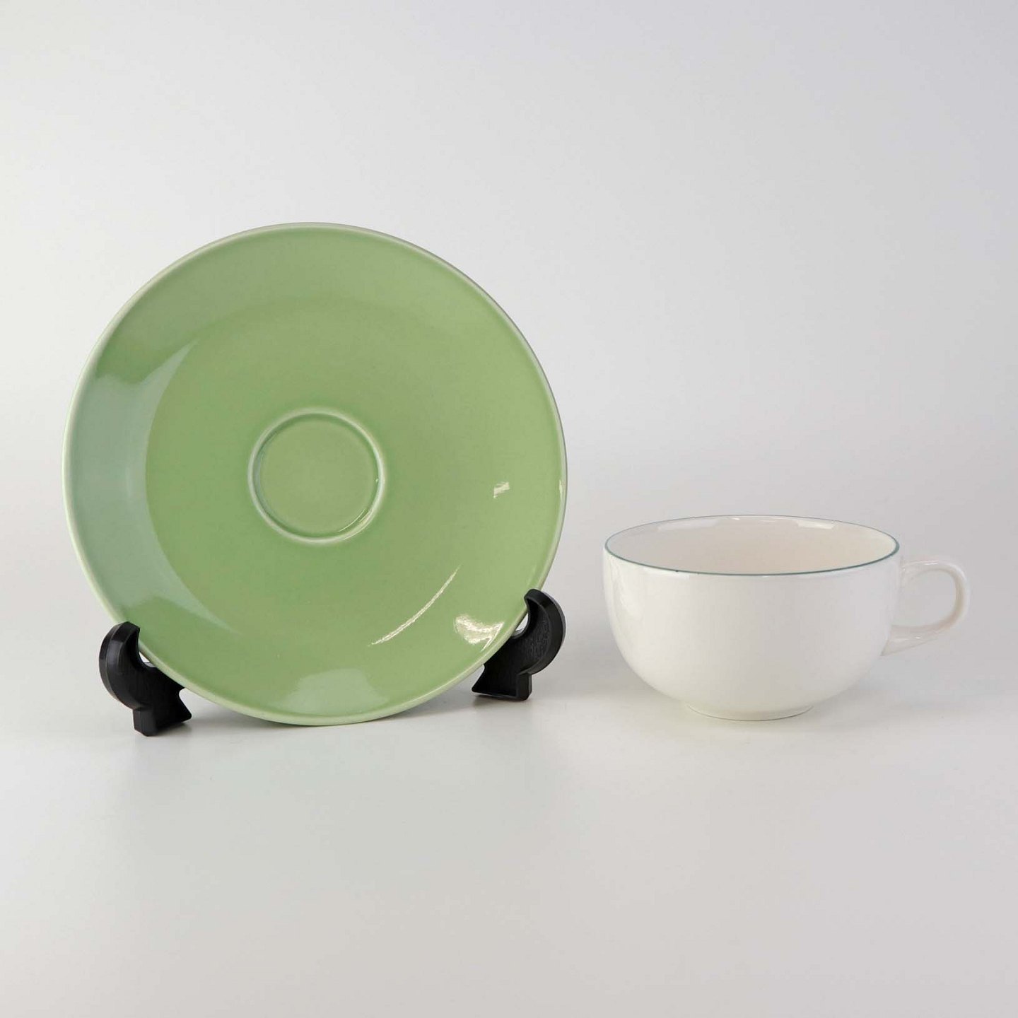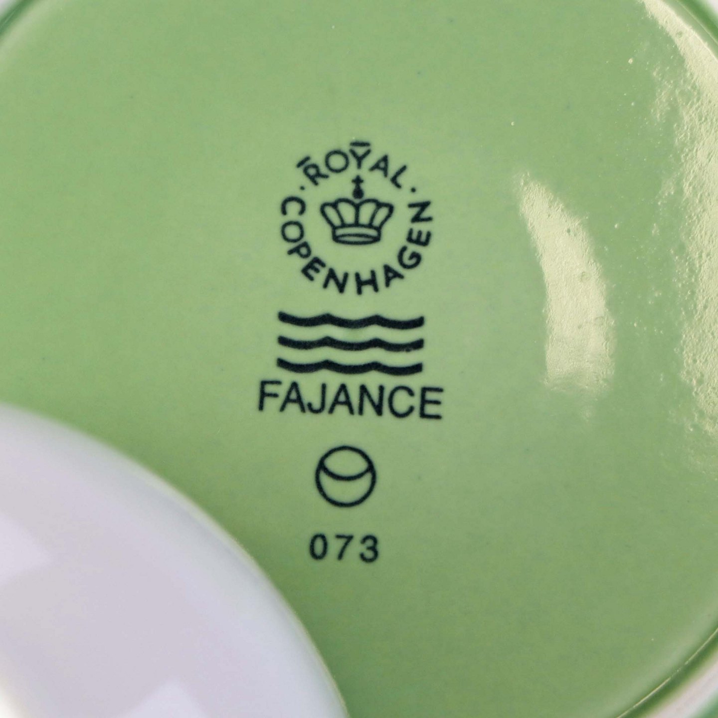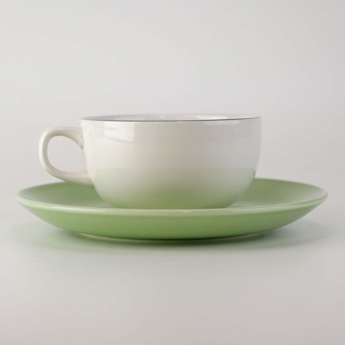 Lille morgenkop i fajance med grøn underkop fra stellet 4 All seasons nr. 069 og 073Produceret af Royal Copenhagen fajance