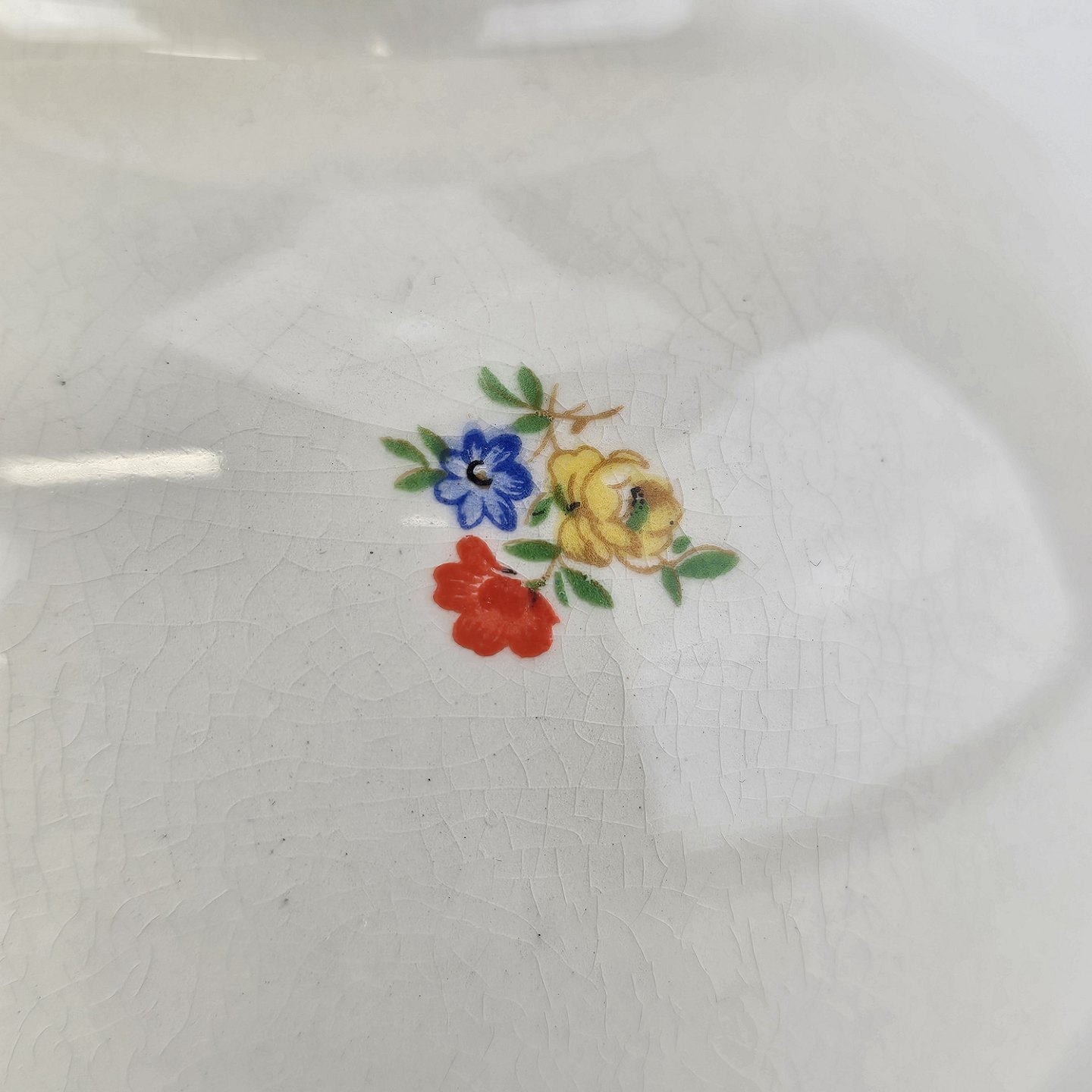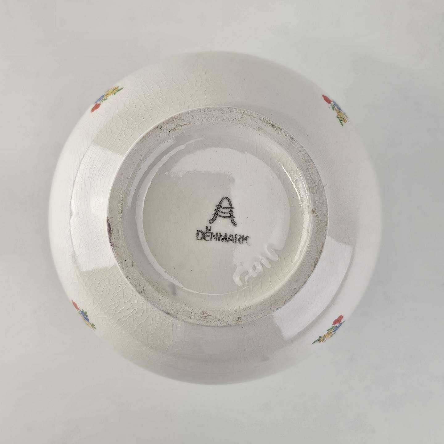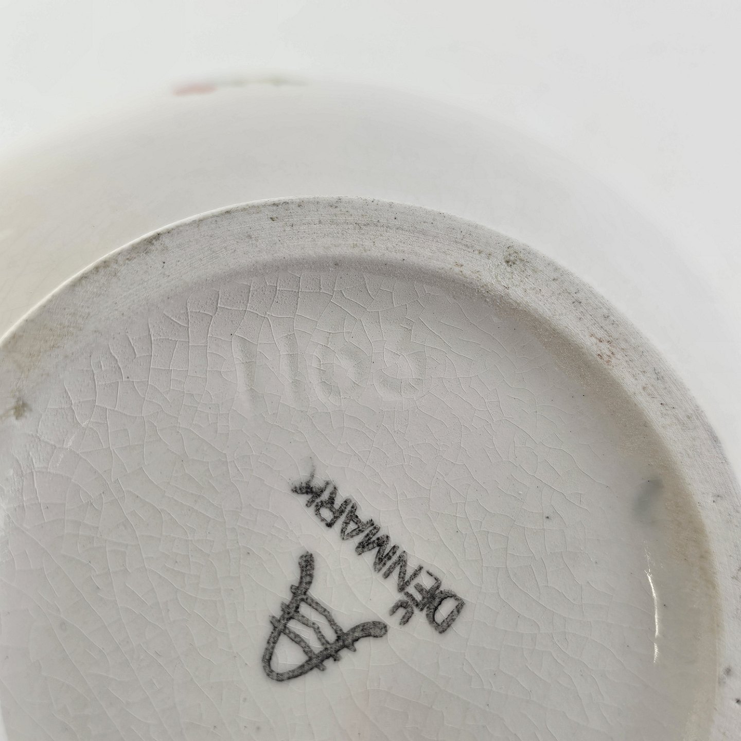 Fremstår med krakeleringer og en mærkning indeni