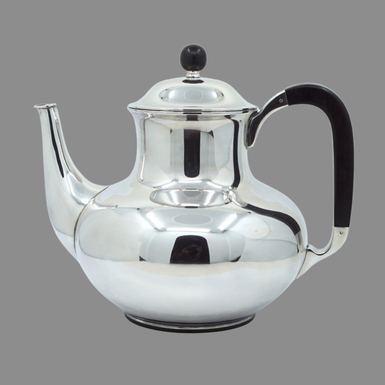 A. F. Rasmussen; Thekande af sterlingsølv, hank og knop af ibenholt. Design nr. 156.H. 17,5 cm.