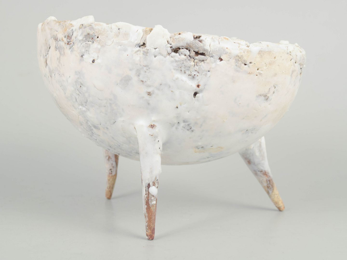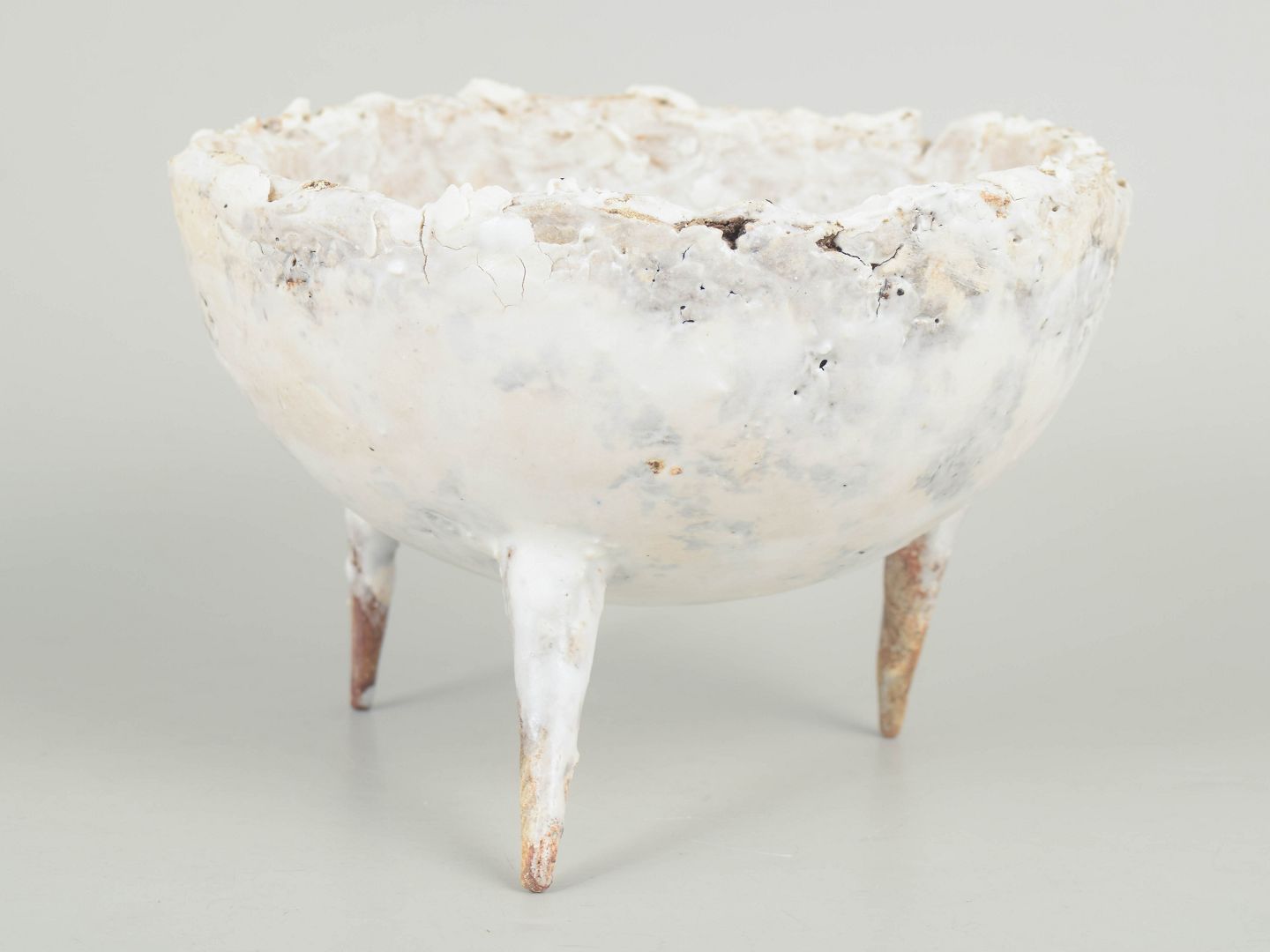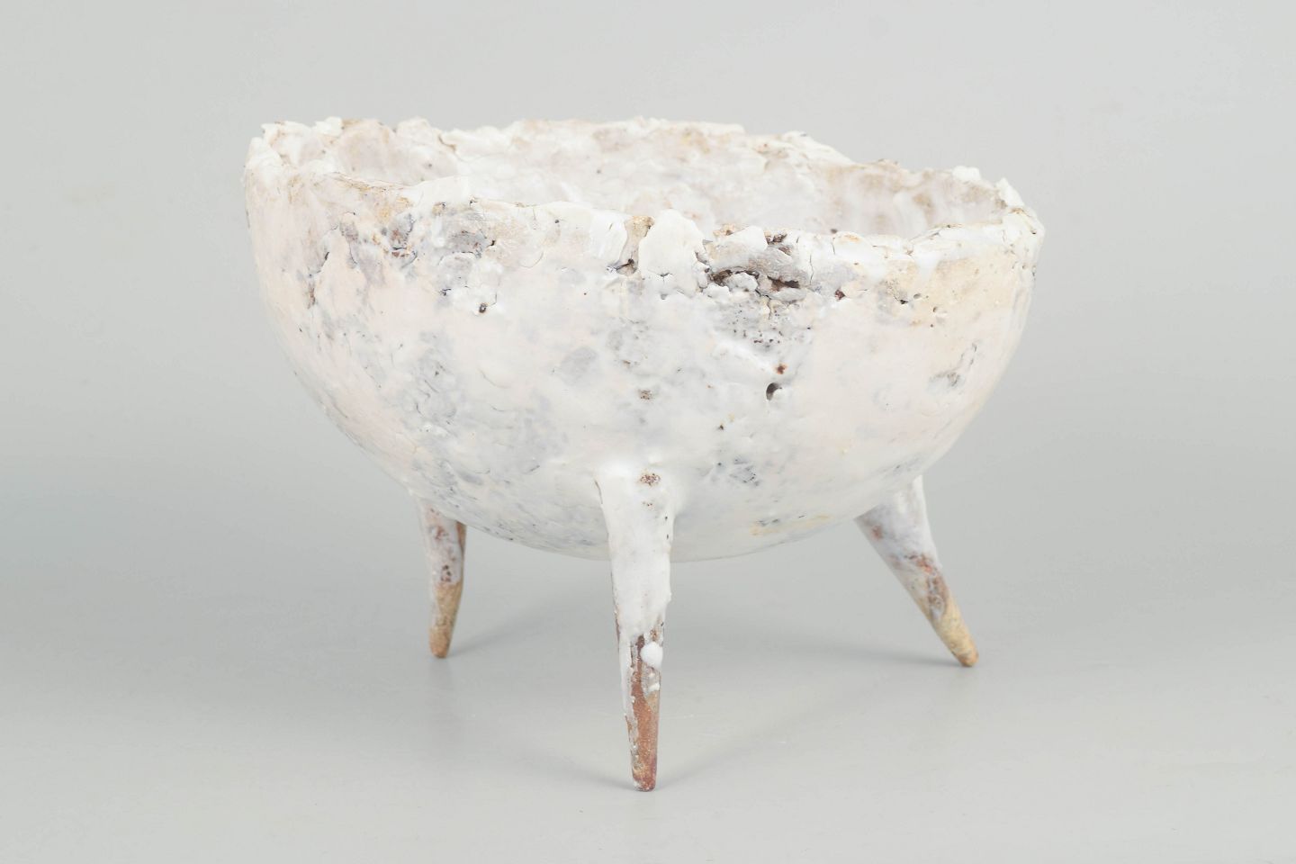 Christina Muff, dansk samtidskeramiker (f. 1971). Unika Skål i genbrugt stentøjsler på tre spidse ben.