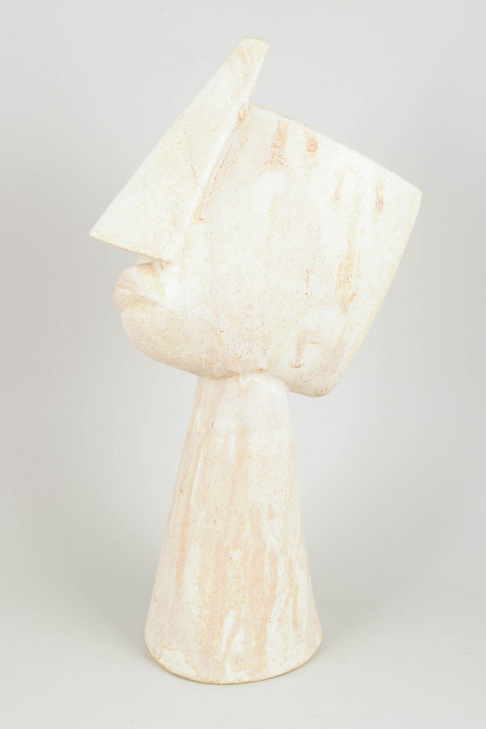 Christina Muff, dansk samtidskeramiker (f. 1971). Stort kubistisk unika ansigt med cremehvid mat glasur.