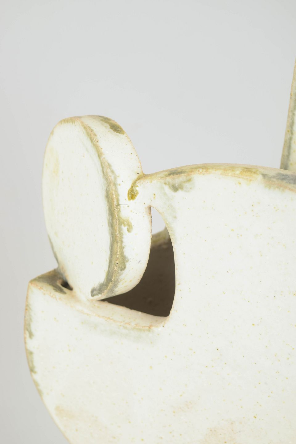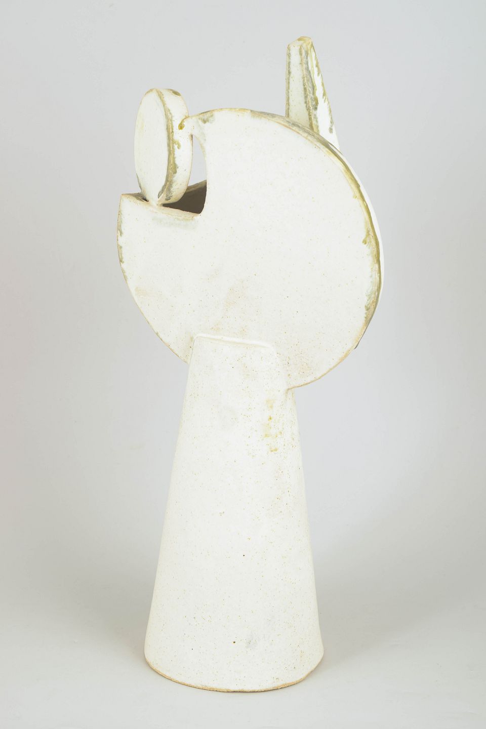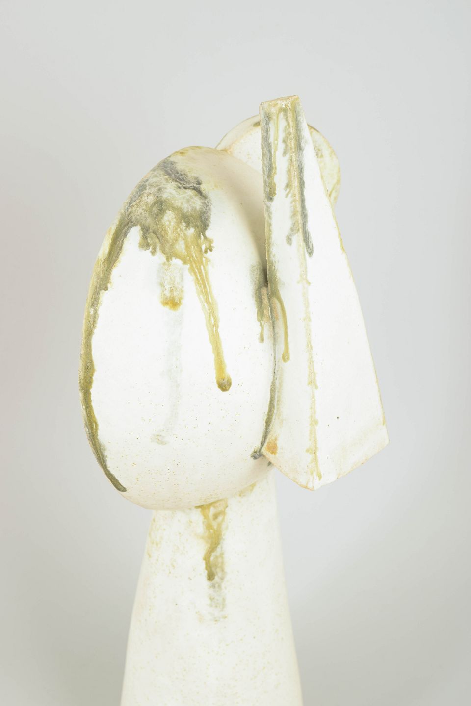Christina Muff, dansk samtidskeramiker (f. 1971). Stort kubistisk unika ansigt med cremehvid mat glasur og farvede glasurløbere. "The art of being extravagant" from the kilnfolk series.Måler : 49 cm. x 23 cm.
