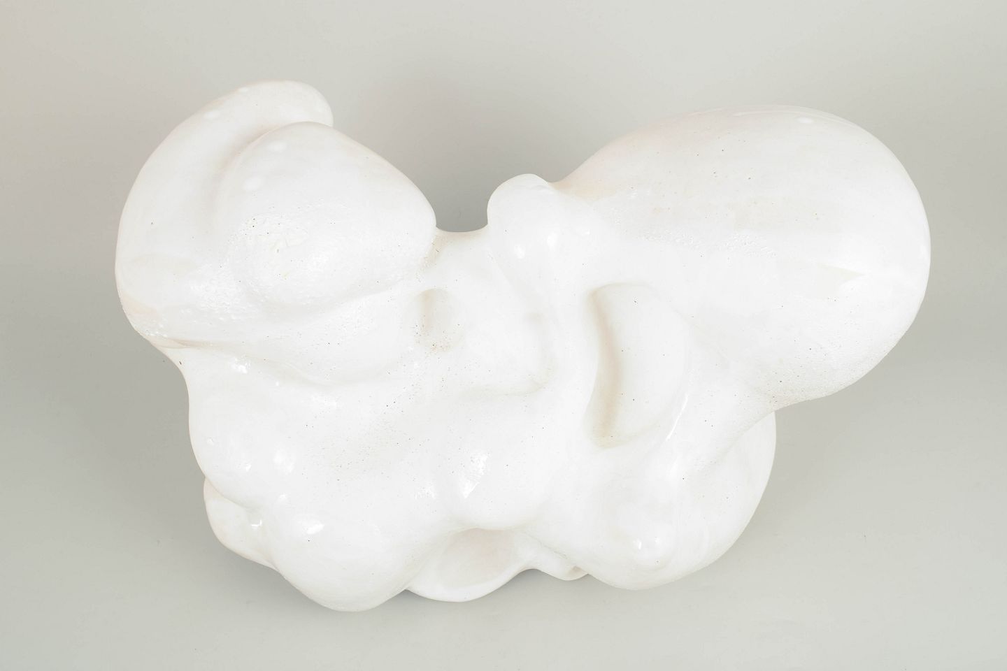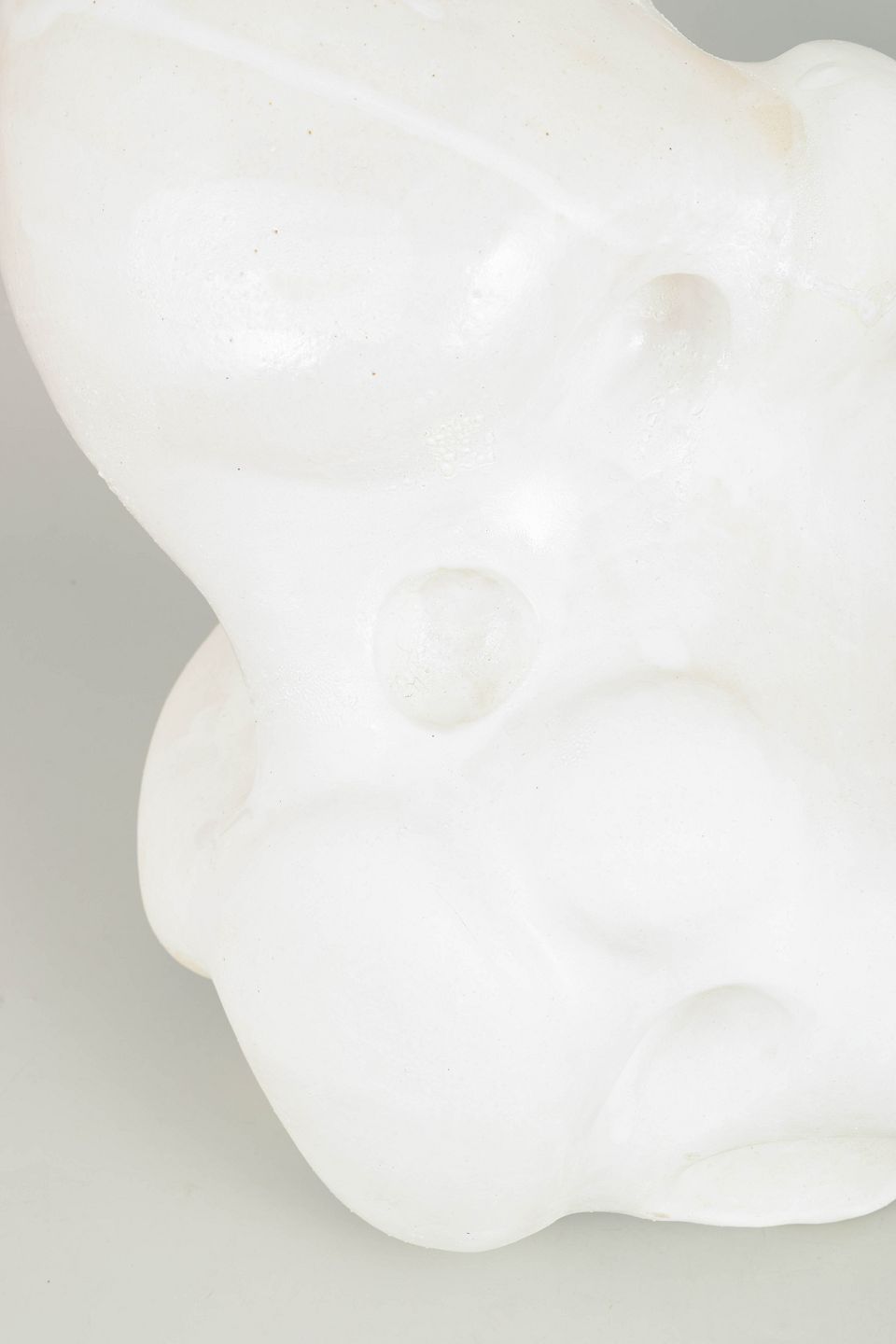Unika stentøjsskulptur, organisk formet. Værket er dækket af et tyndt lag mat hvid porcelæn og pletvist penselglaseret med hvid, blank glasur, matte hvide glasurer og hvide glasurer med specielle effekter.