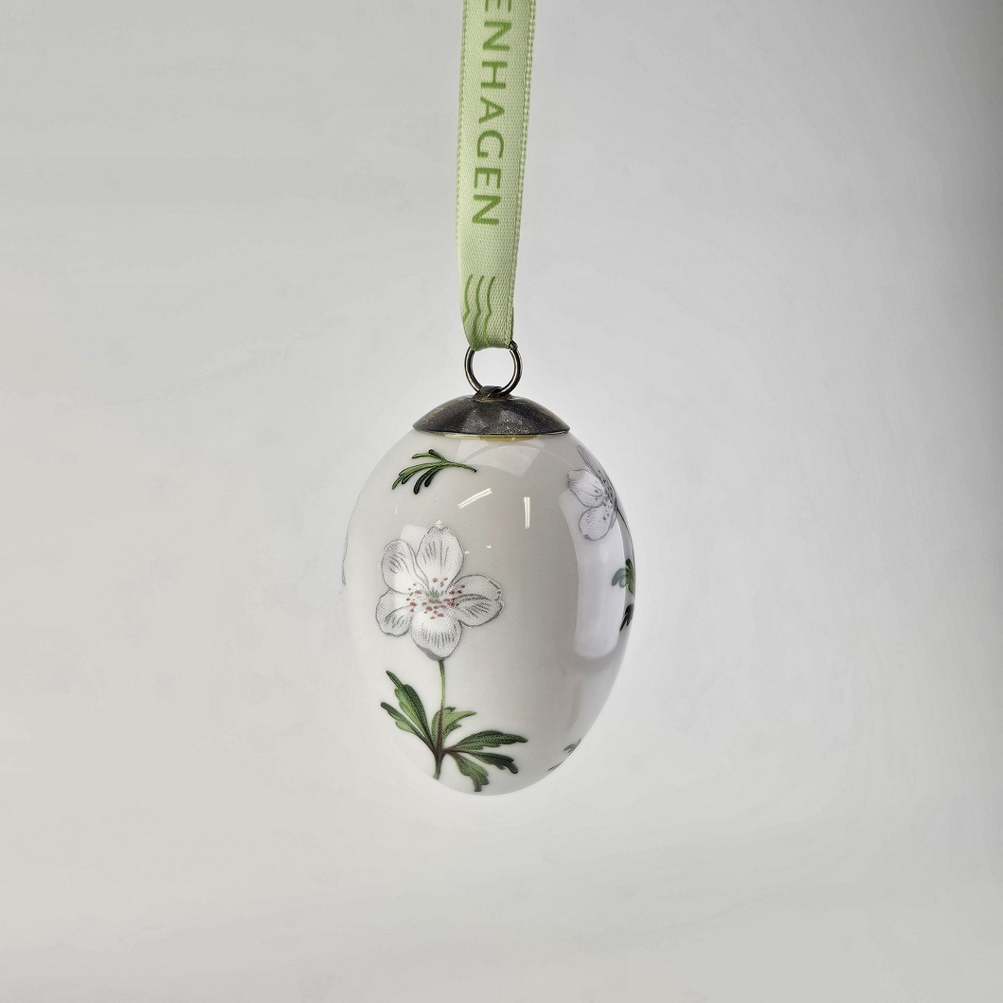 Påskeæg af kongelig porcelæn fra Forårskollektionen år 2009 med motiv af hvid anemoneProducent Royal Copenhagen
