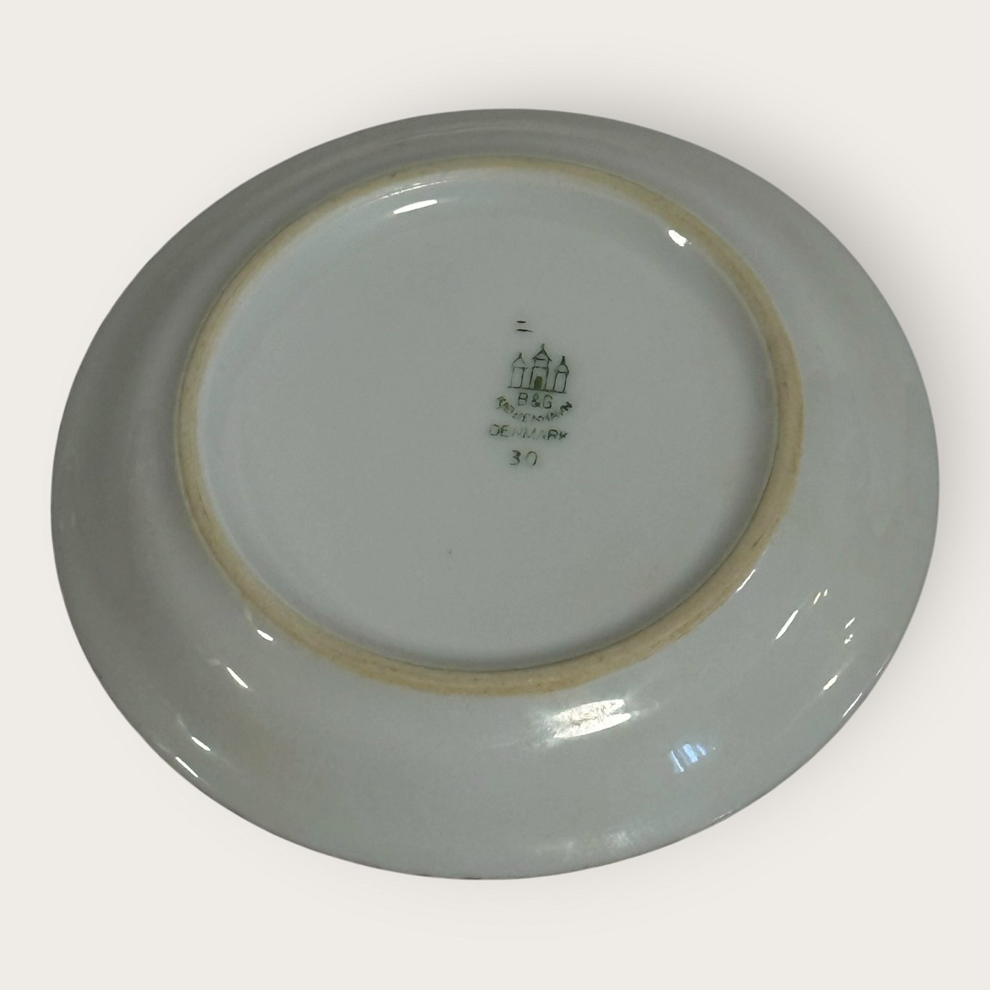 Bing & Grondahl, Aakjær, Weißes Porzellan mit Goldrand, kleine Schale Nr. 30, 9,5 cm Durchmesser, 1. Wahl *Guter Zustand*