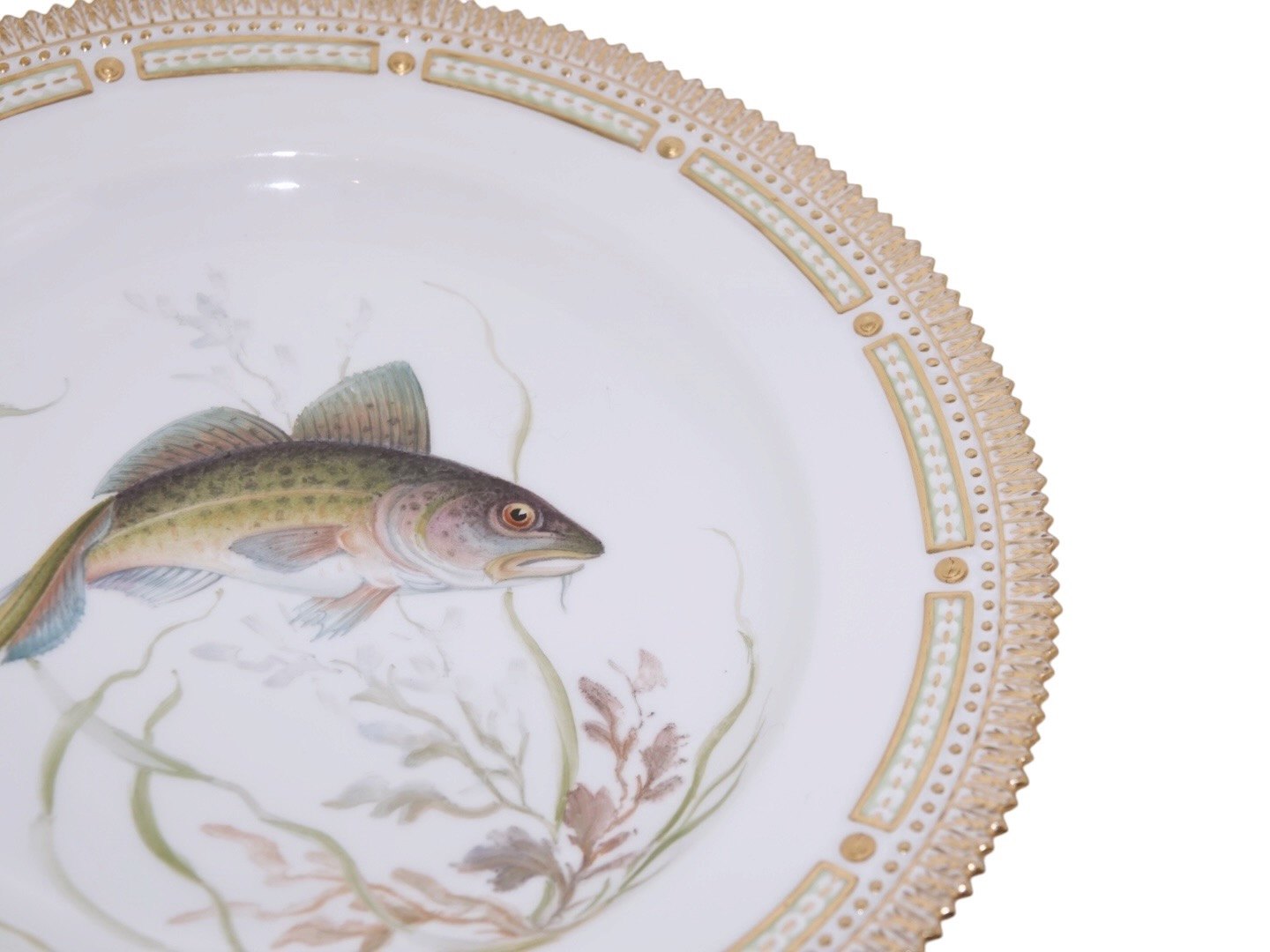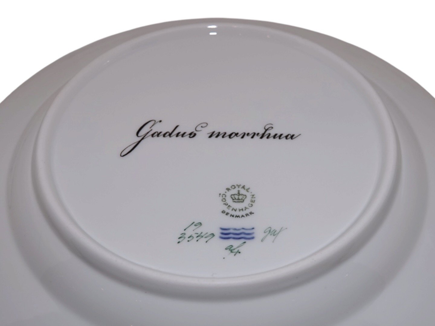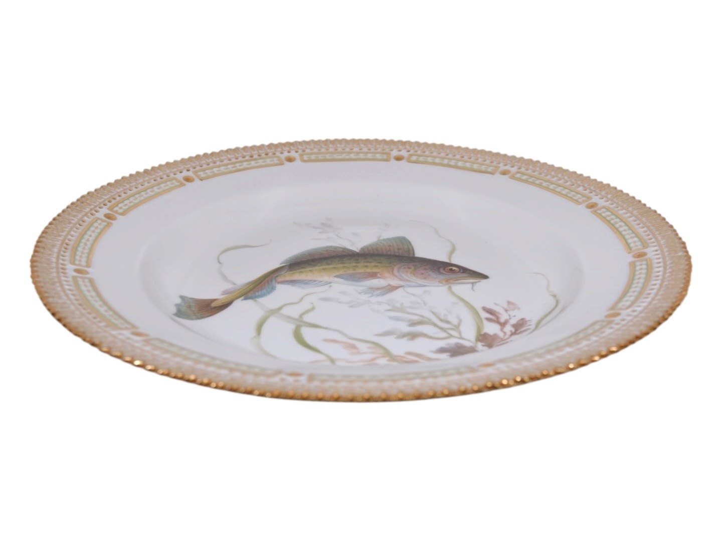 Royal Copenhagen Flora Danica, middagstallerken dekoreret med fisk.Dekorationsnummer 19/3549.