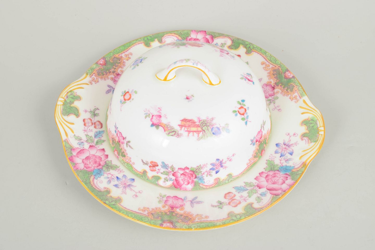 Royal Doulton "Temple", osteklokke.Dekorativ osteklokke i porcelæn med farverig blomsterdekoration i Temple mønster, bestående af kuppel og tilhørende fad.