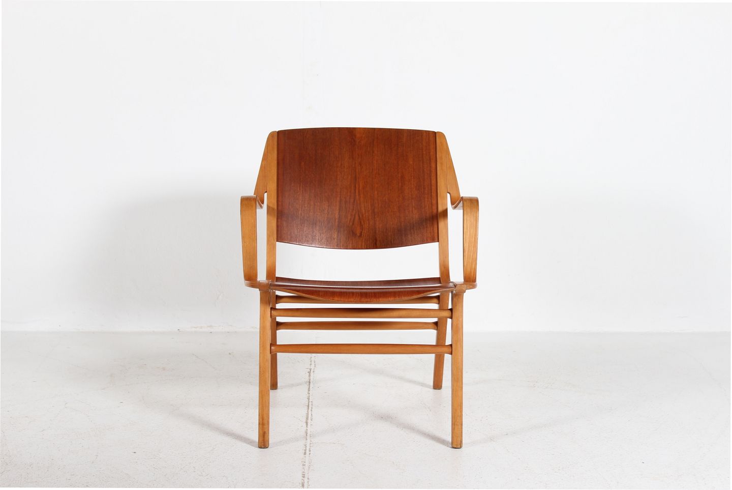 Orla Mølgaard & Peter HvidtArmstol fremstillet af formspændt bøg og teak