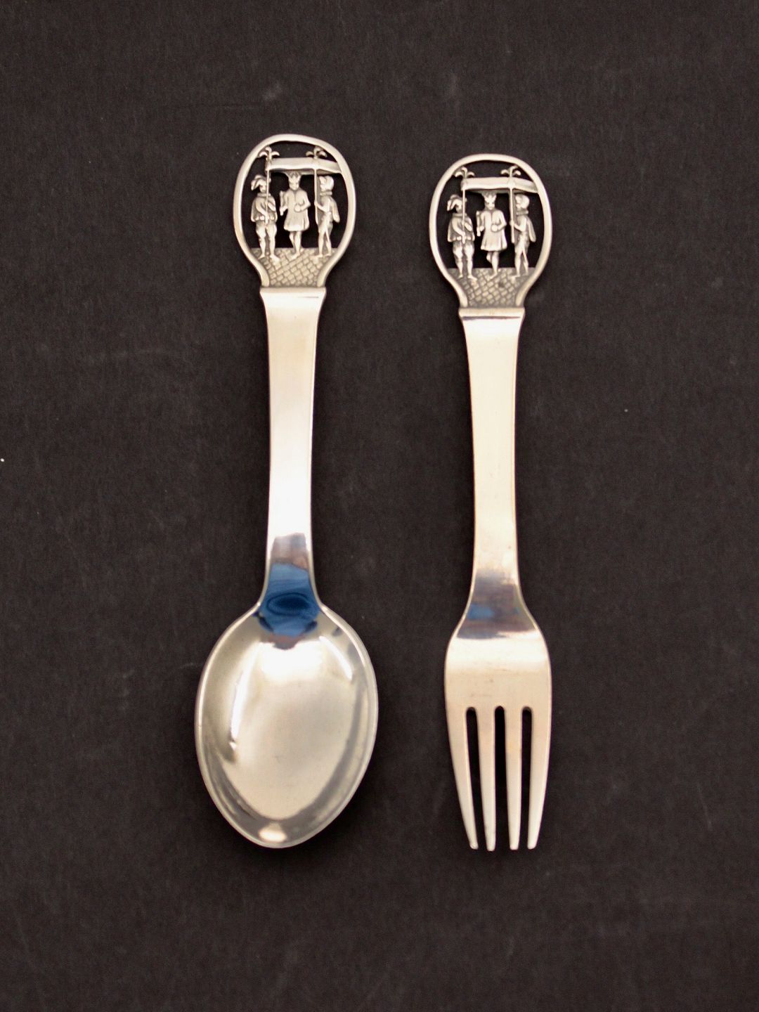H C Andersen flot barne bestik 14,5 cm. tretårnet sølv "Kejserens nye Klæder" emne nr. 635093
