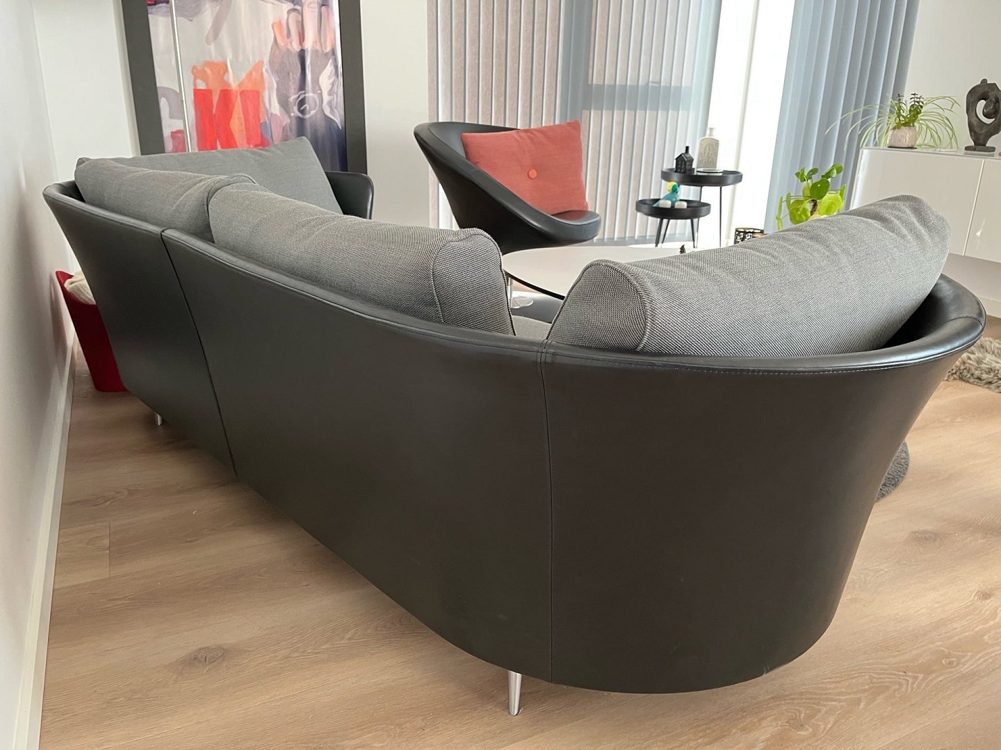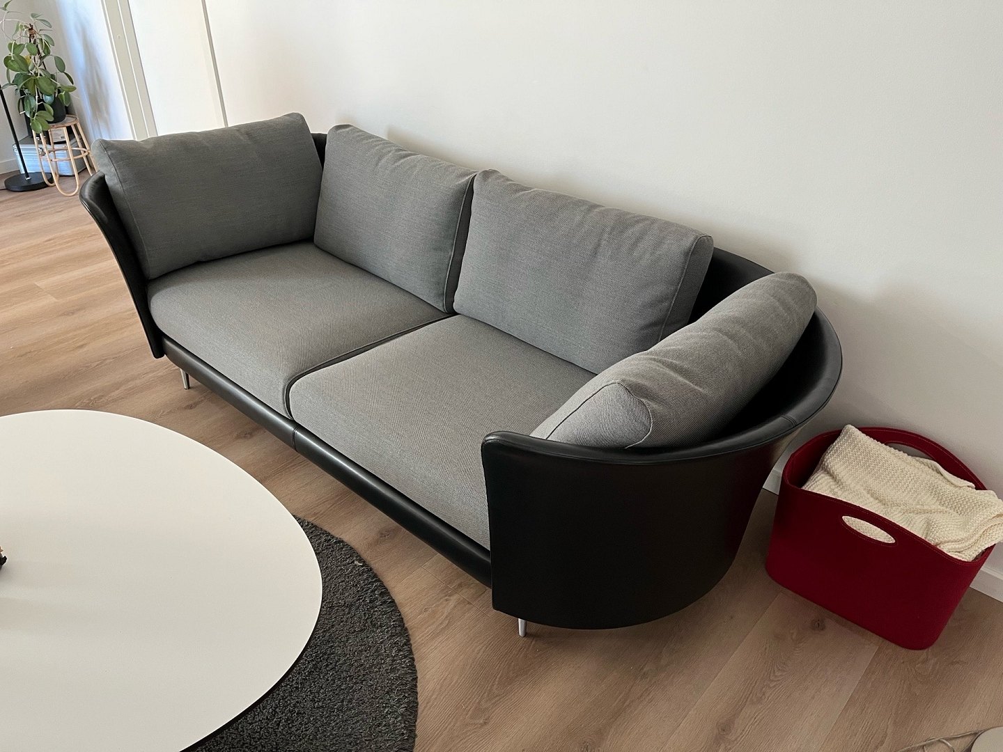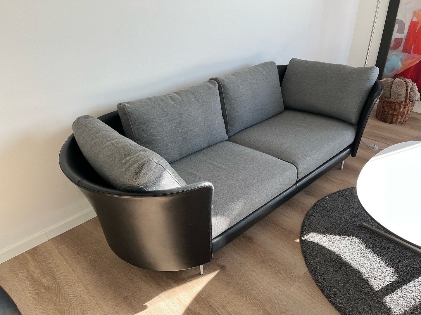 Exklusives Mogens Hansen Vascas Sofa in schwarzem Preston-Leder und Hallingdal-Stoff. Originalpreis: 51.975,-. Dieses exklusive Vascas Sofa von Mogens Hansen besticht durch sein hervorragendes Design und kombiniert schwarzes Preston-Leder mit hochwertigem Hallingdal-Stoff. Das Sofa ist mit eleganten Spike-Fußleisten ausgestattet. Die Beine in matter Ausführung unterstreichen das stilvolle Design. Die Uhr wurde im März 2020 geboren und hatte nur einen Besitzer. Sie stammt aus einem Nichtraucherhaushalt ohne Haustiere und Kinder und wurde nur wenig täglich im Wohnzimmer benutzt. Der Riemen ist daher nahezu neuwertig und in einem sehr guten Zustand. Das Design zeichnet sich durch eine eng geschwungene Außenschale aus, die einen schönen Kontrast zum weichen, bequemen Stoff bildet. Das Modell Vascas kombiniert Leder und Stoff an Gestell und Kissen und unterstreicht so den charakteristischen Ausdruck des Sofas. Es entsteht ein elegantes Zusammenspiel zwischen dem straffen Äußeren und dem einladenden Inneren Händler
