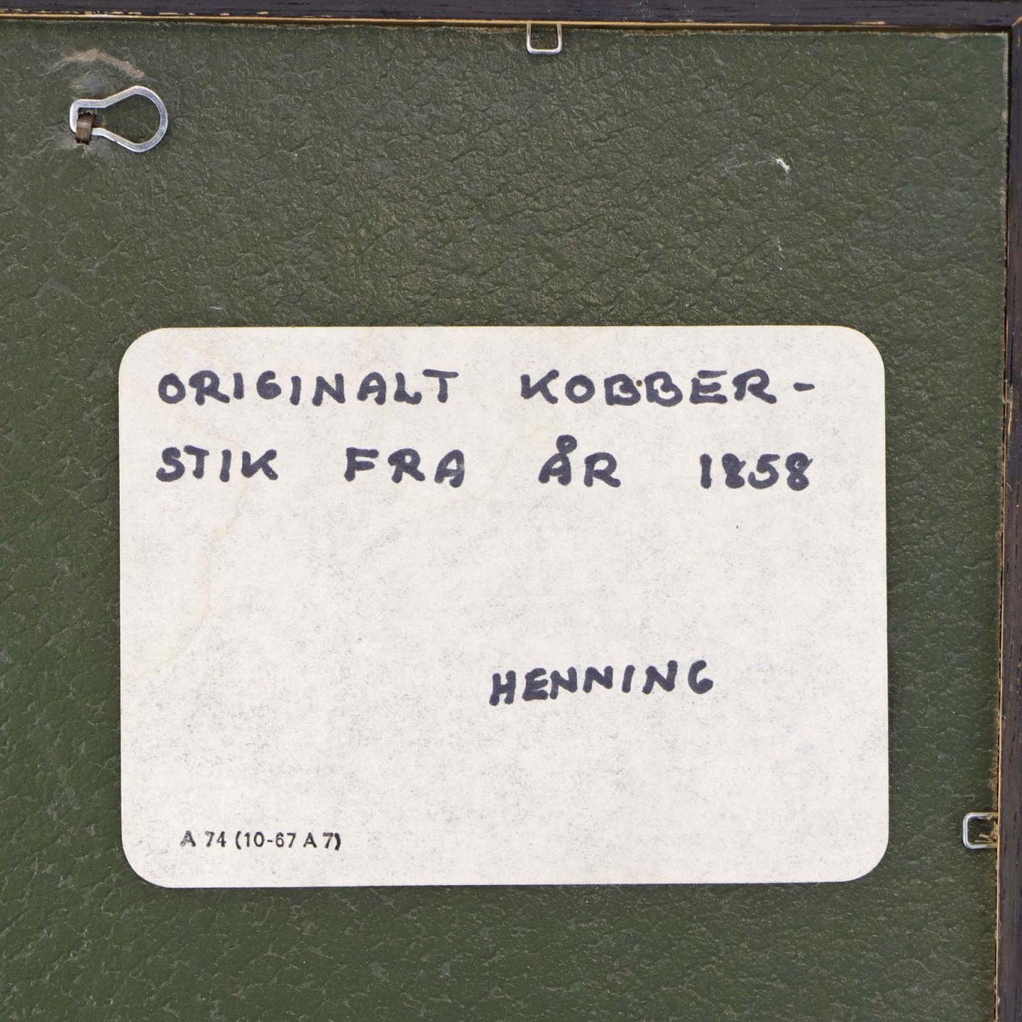 Originalt kobberstik fra år 1858 i træramme med teksten Dragon og motiv af en soldat i blå uniform.Kunstner ukendt