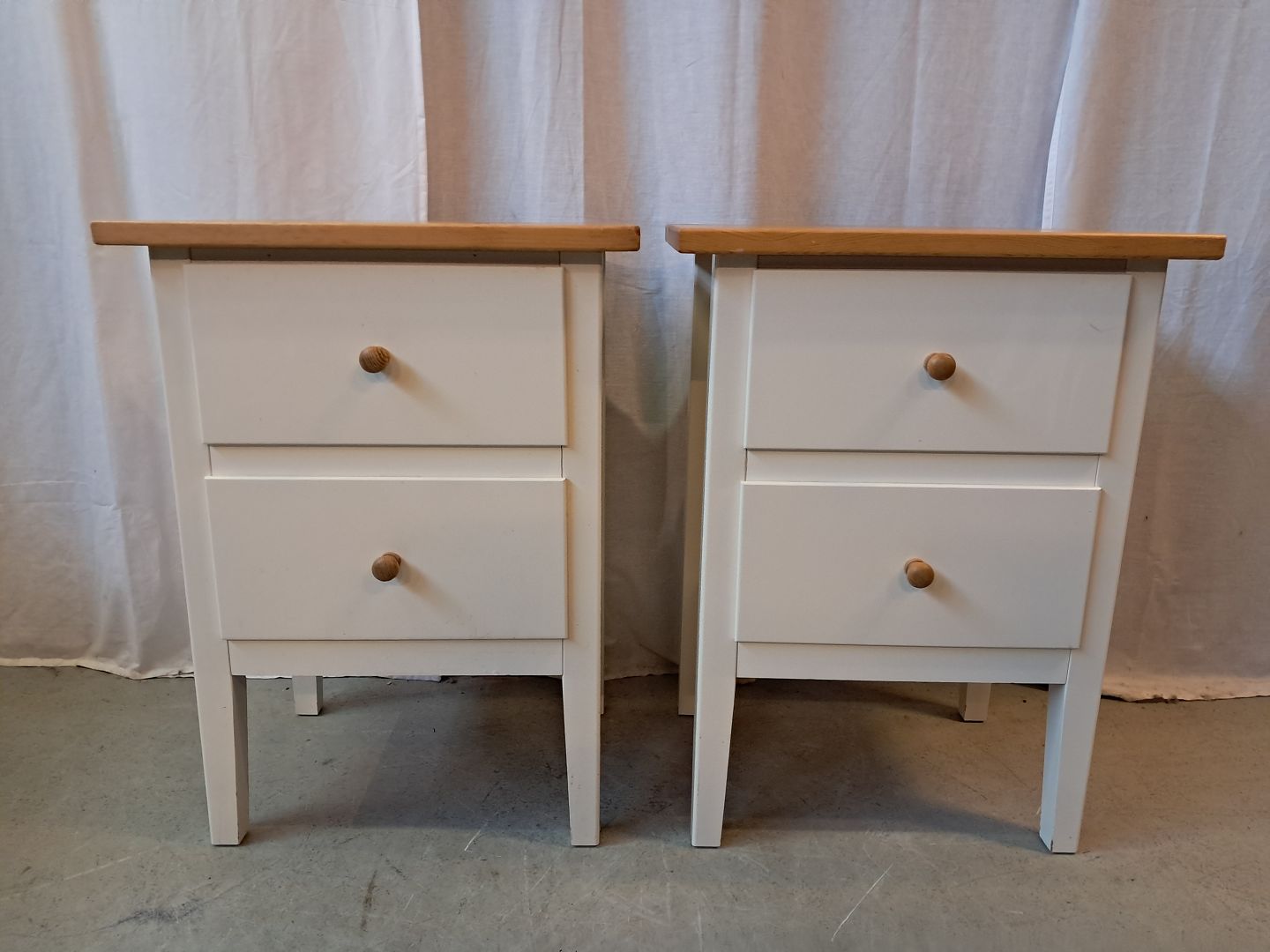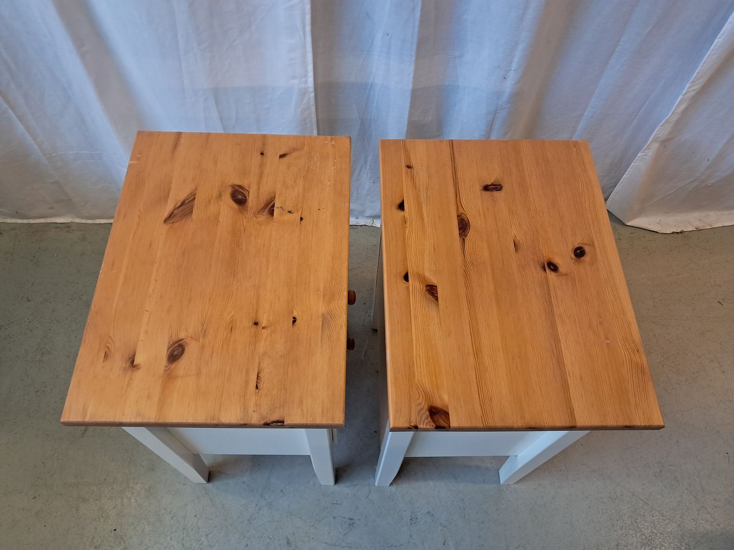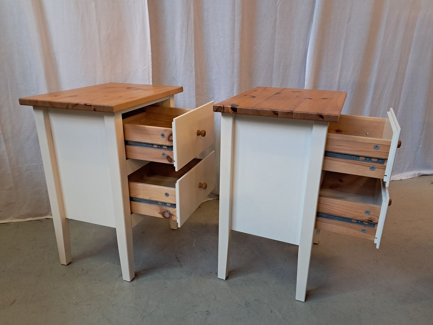 2 Kommoder i fyrretræ og laminat, af nyere dato.De har lidt brugsspor.