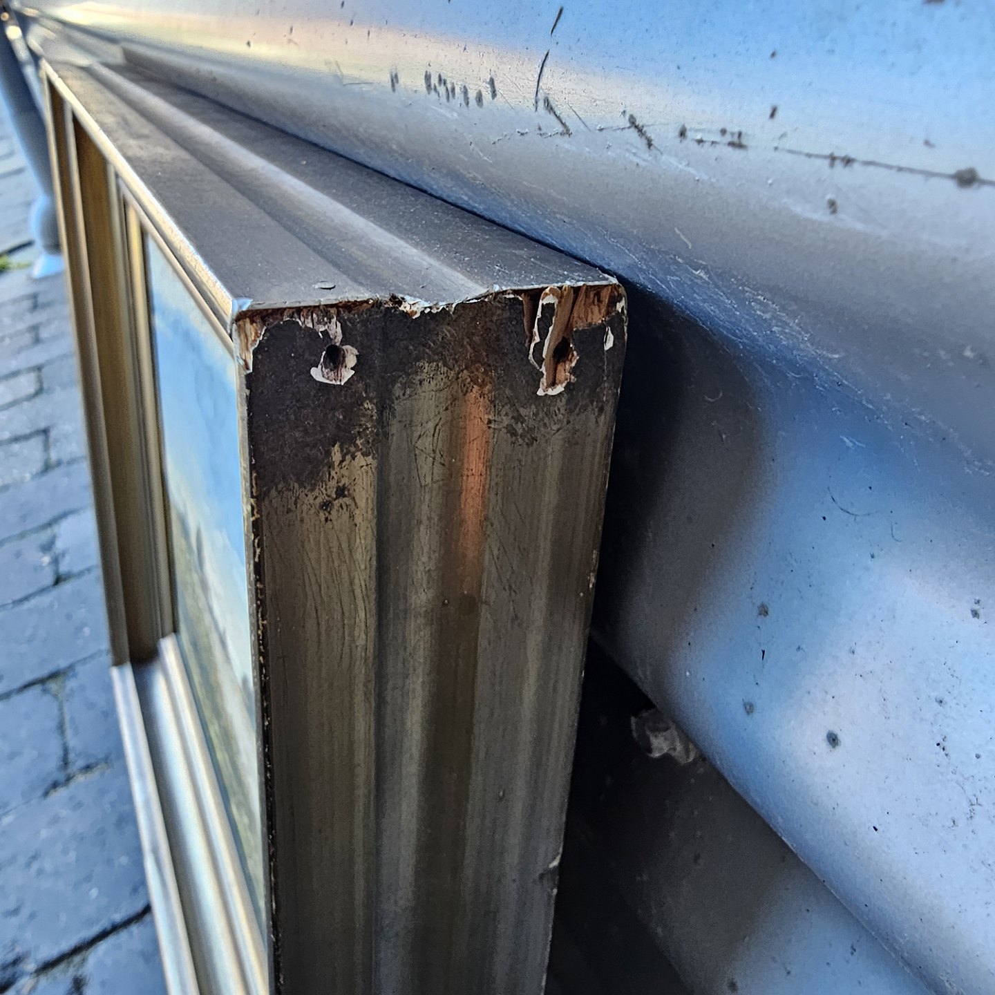 Oliemaleri på lærred monteret i bred træramme med landskabsmotiv