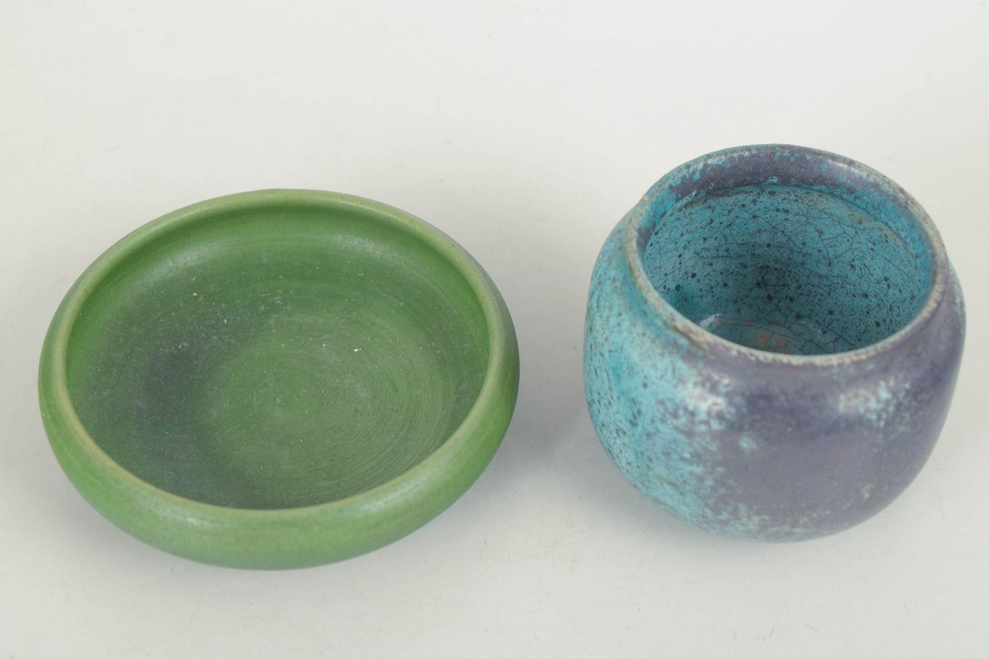 Dimensioner: Fad: H. 3 cm, D. 9 cm. Vase: H. 5 cm, D. 7 cm.