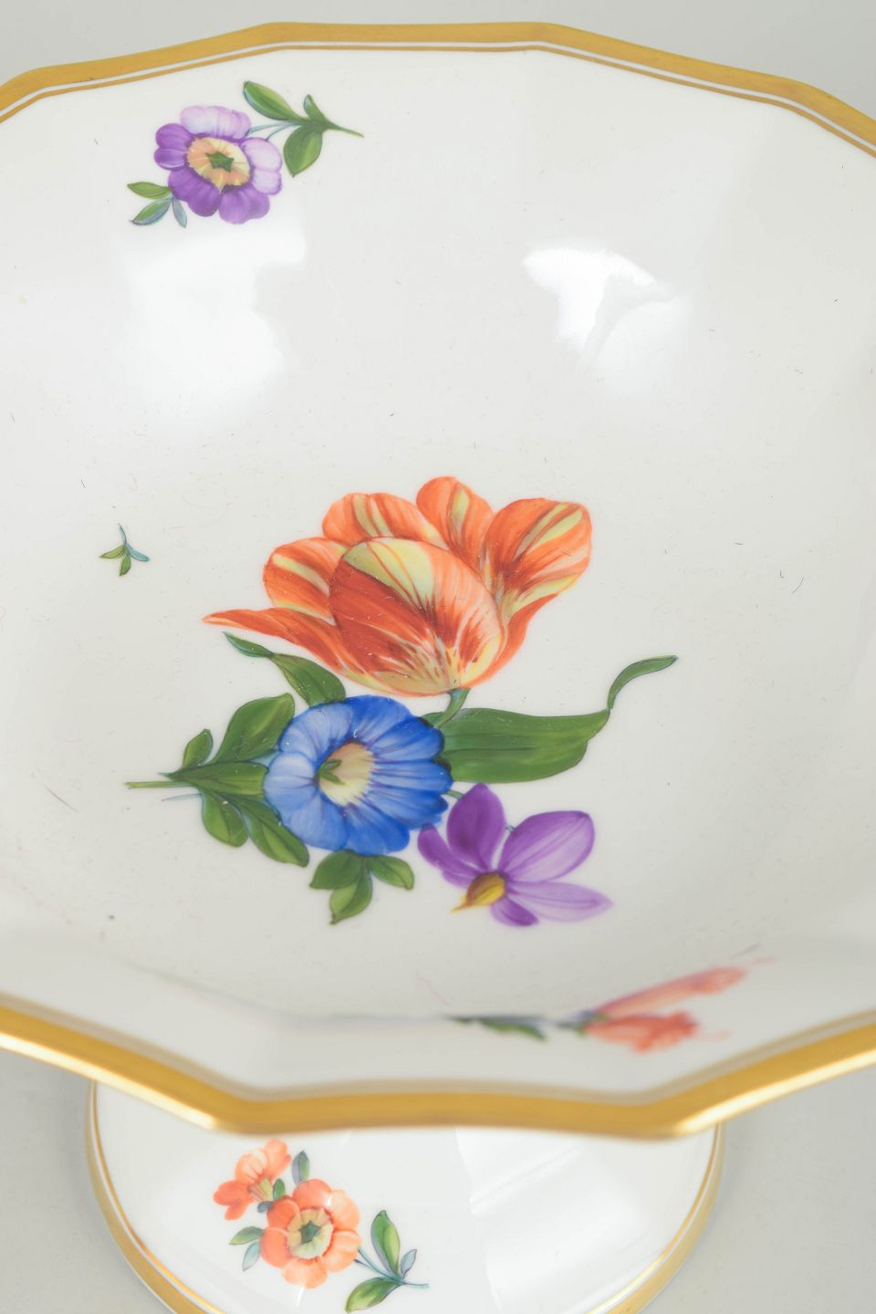Royal Copenhagen Saksisk blomst opsats.Elegant opsats i porcelæn dekoreret med håndmalet blomsterdekoration i Saksisk blomst mønster. Fremstillet i første sortering med klassisk form og balanceret proportion, model 627/8531, dateret 1961.