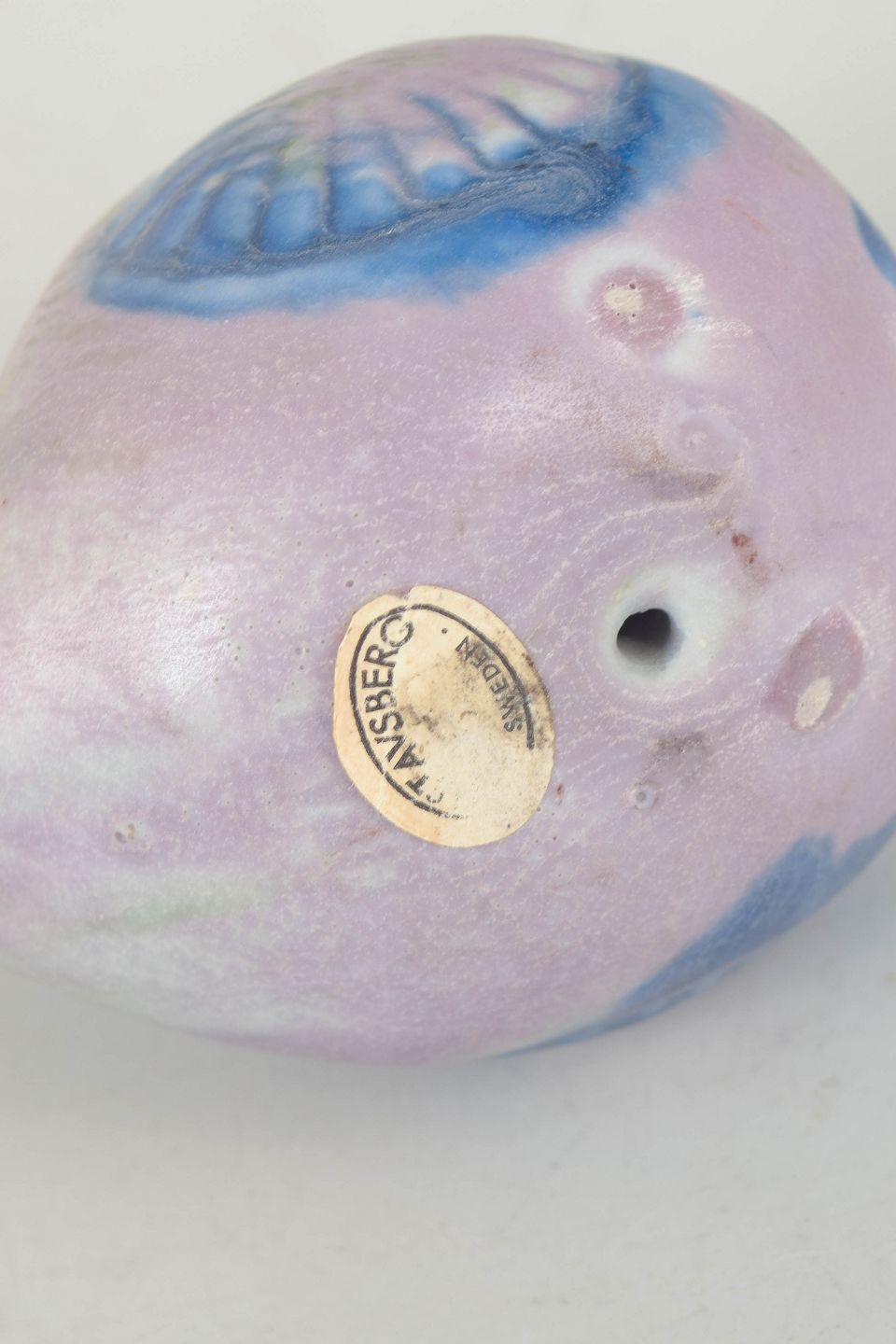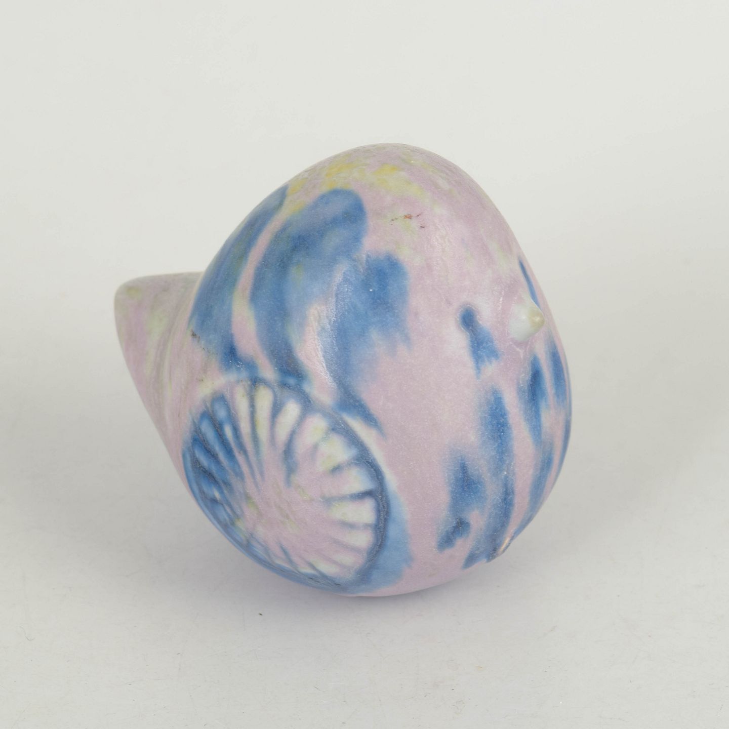 Lisa Larsson for Gustavsberg, fuglefigur.Dekorativ fuglefigur i stentøj med blødt afrundet form og håndmalet dekoration i lyserøde og blå nuancer. Mærket med Gustavsberg klistermærke.
