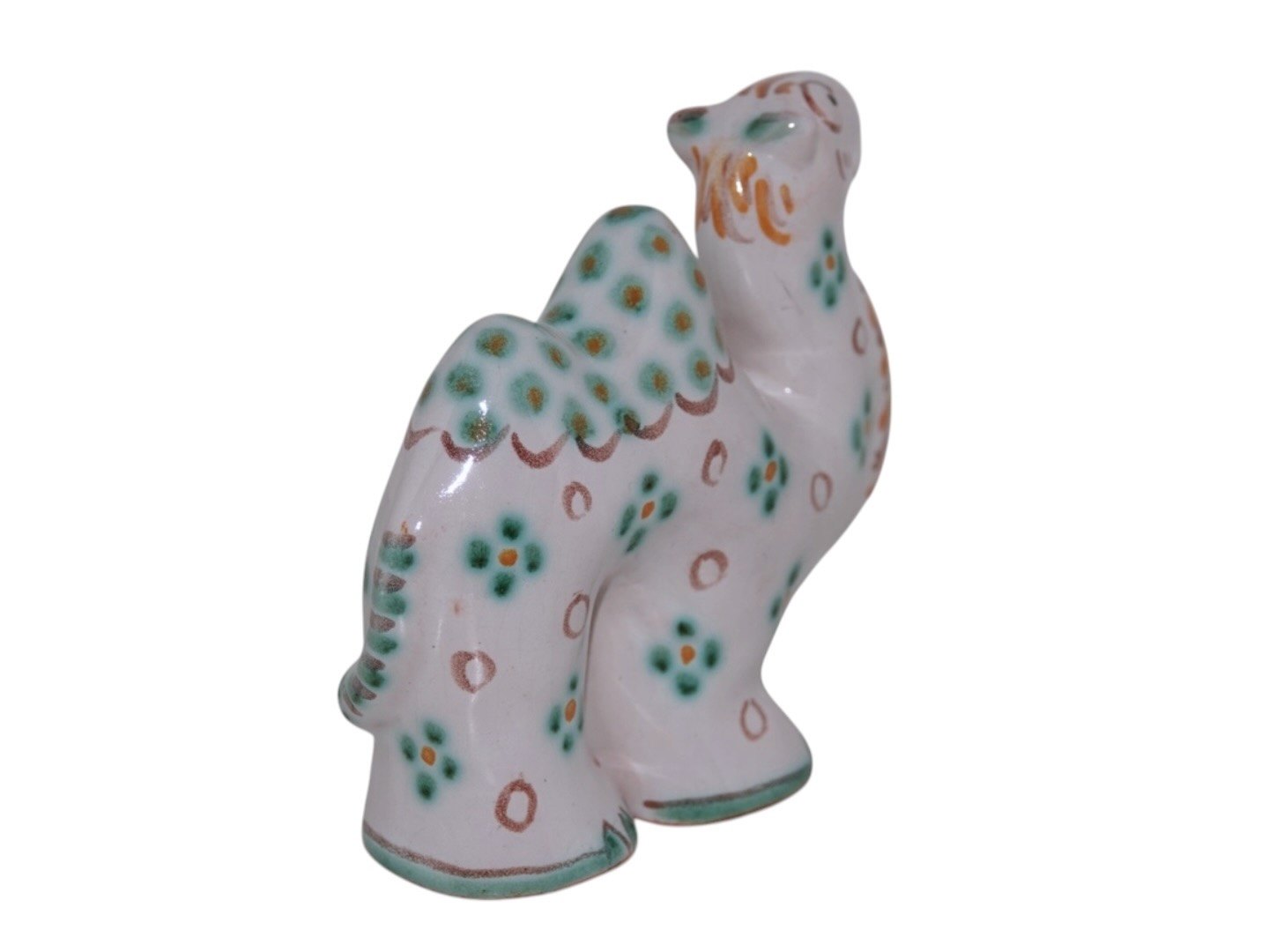 Lille Hjorth keramikfigur fra Bornholm, kamel.Længde 8,0 cm., højde 7,5 cm.
