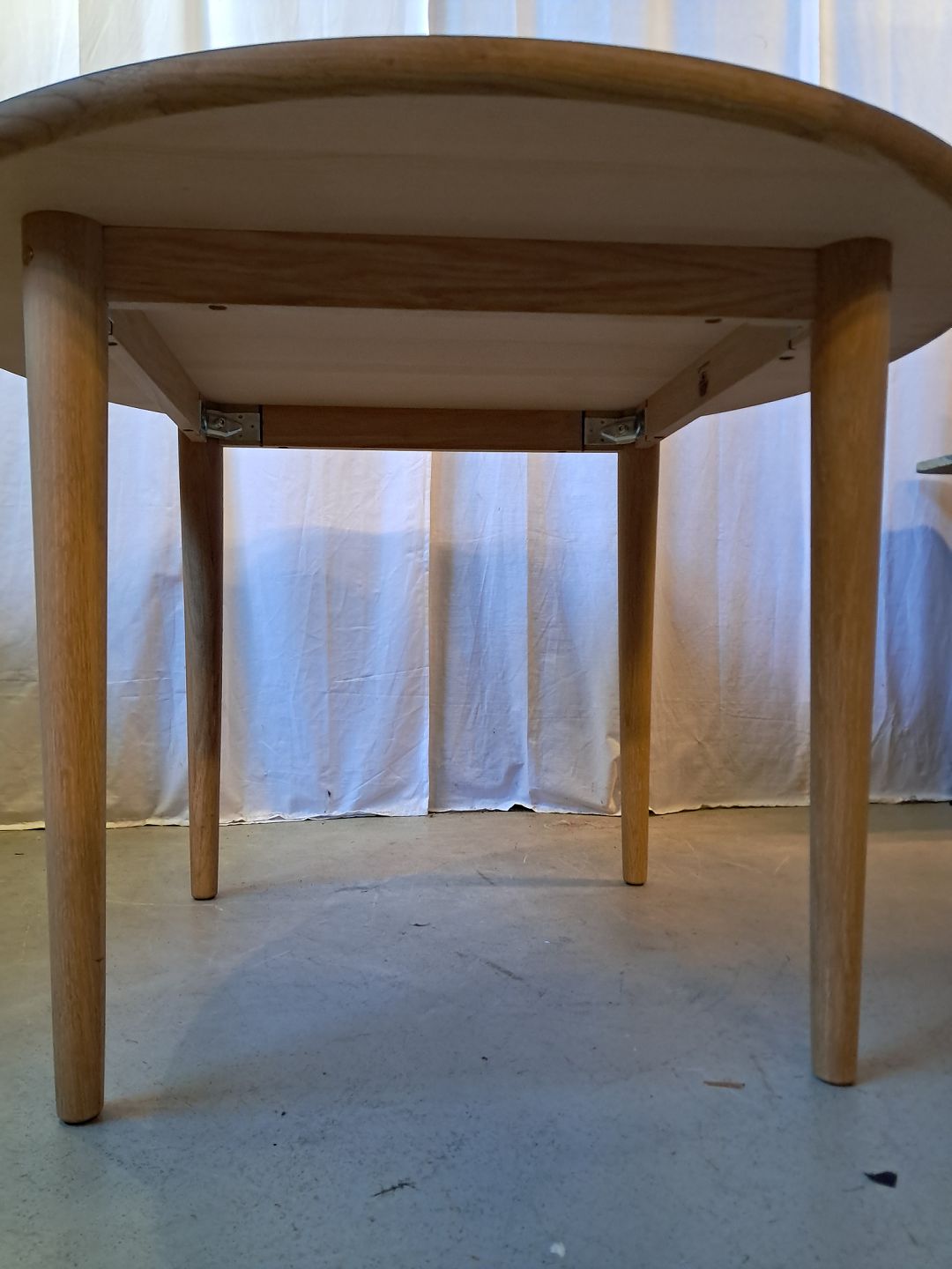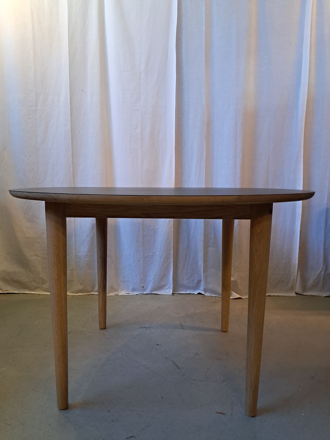 Rundt FDB spisebord modl C62,i egetræ med formikaplade, fra 2020erne.