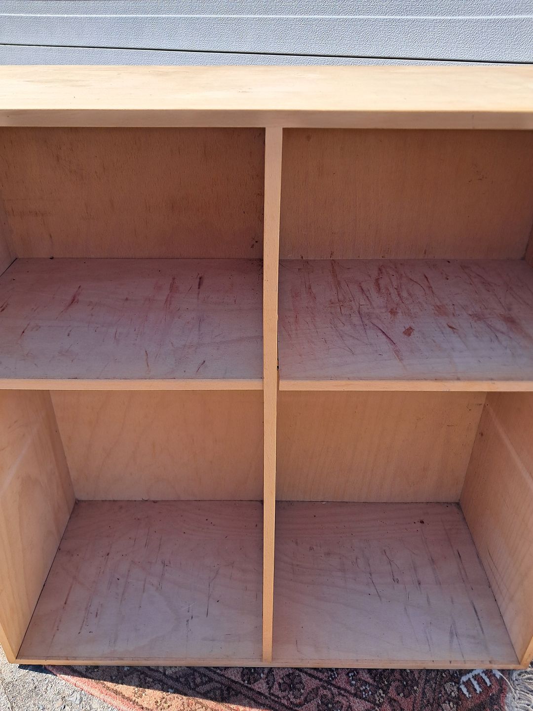 Reolkasse i krydsfiner, fra 2000erne.Den har brugsspor.