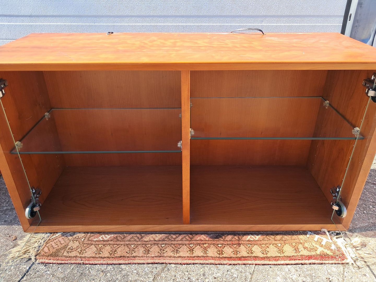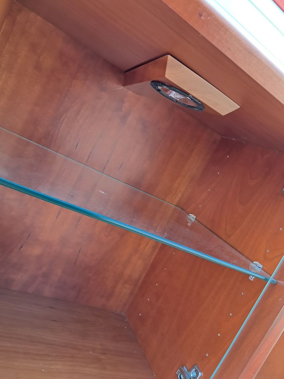 2 Vitrineskabe i fineret kirsebær, fra 2000erne.De har brugsspor og der medfølger ophæng.