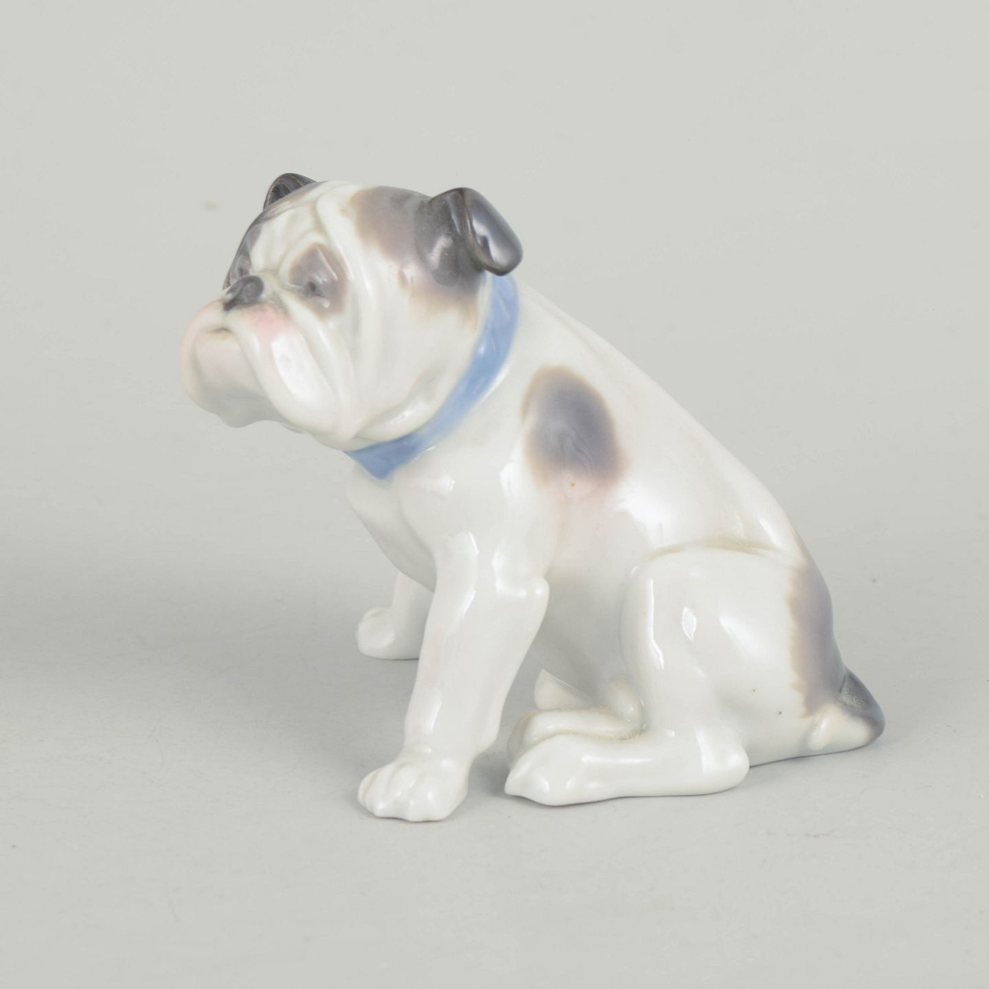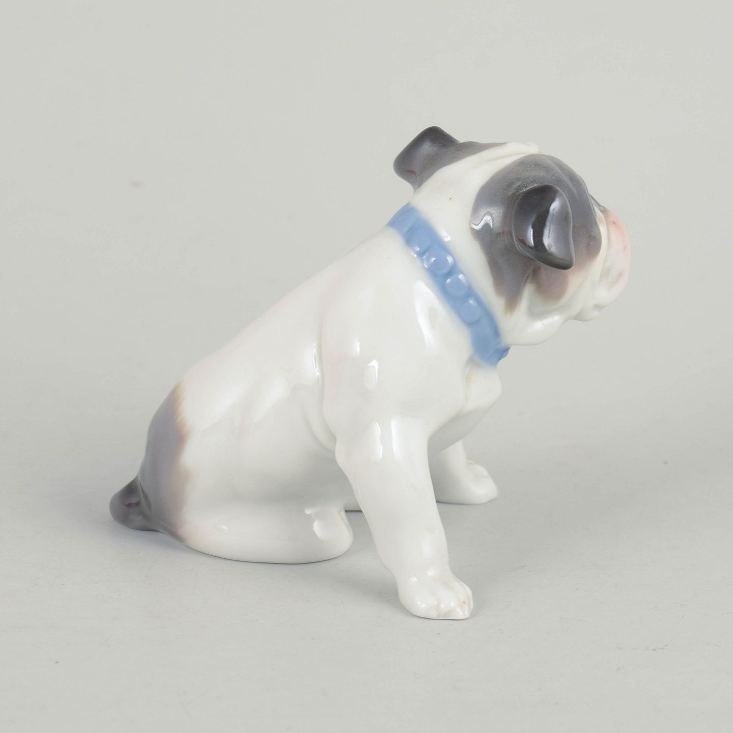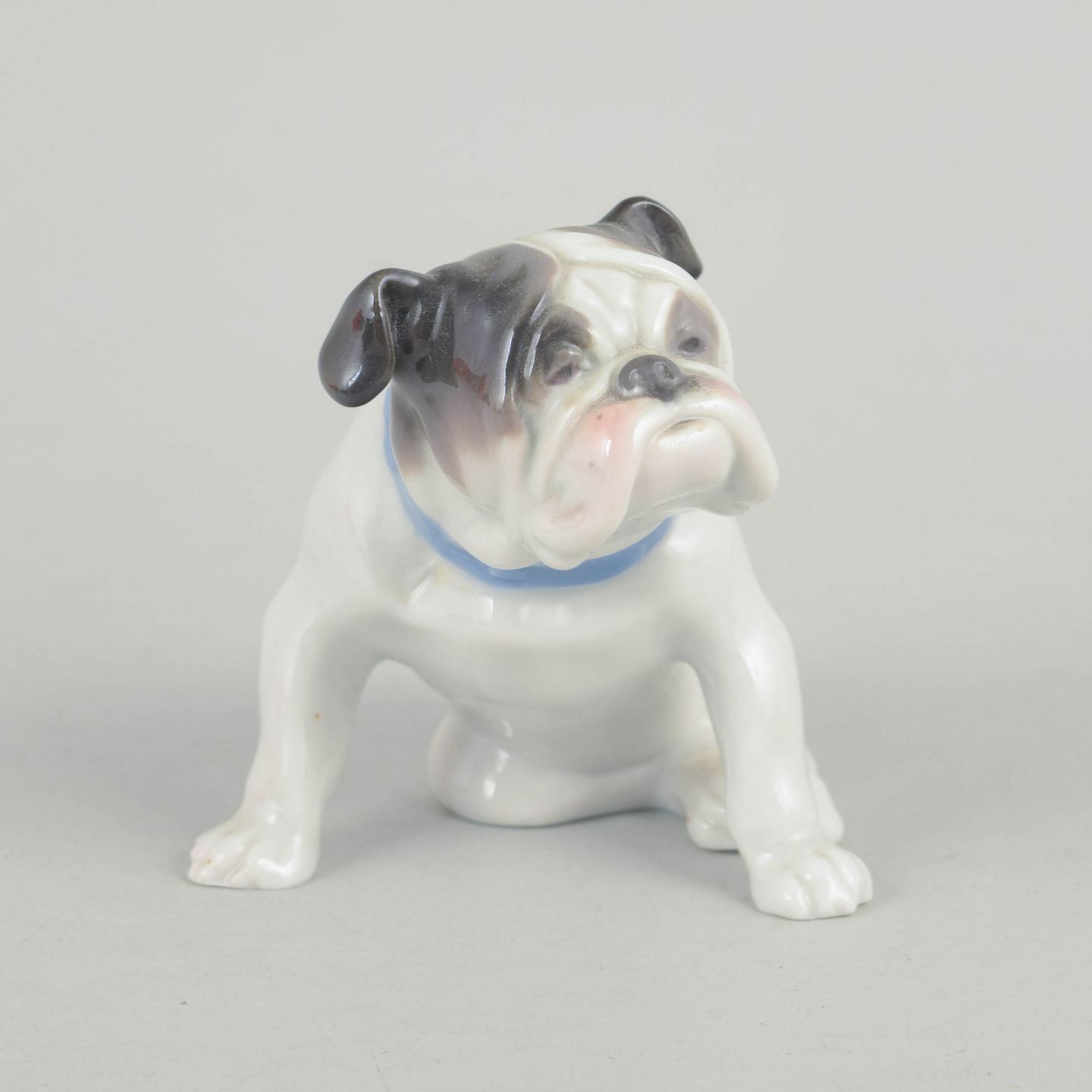 Europæisk porcelænsfigur, fransk bulldog.Naturalistisk udformet porcelænsfigur af fransk bulldog med håndmalede detaljer i grå, hvide og rosa nuancer.