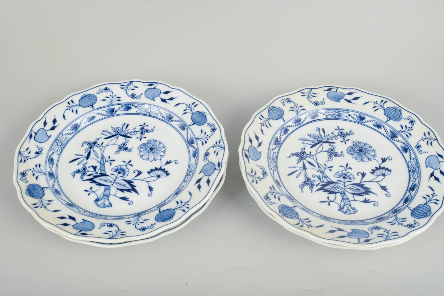 Meissen løgmønster, sæt af fire middagstallerkener.
