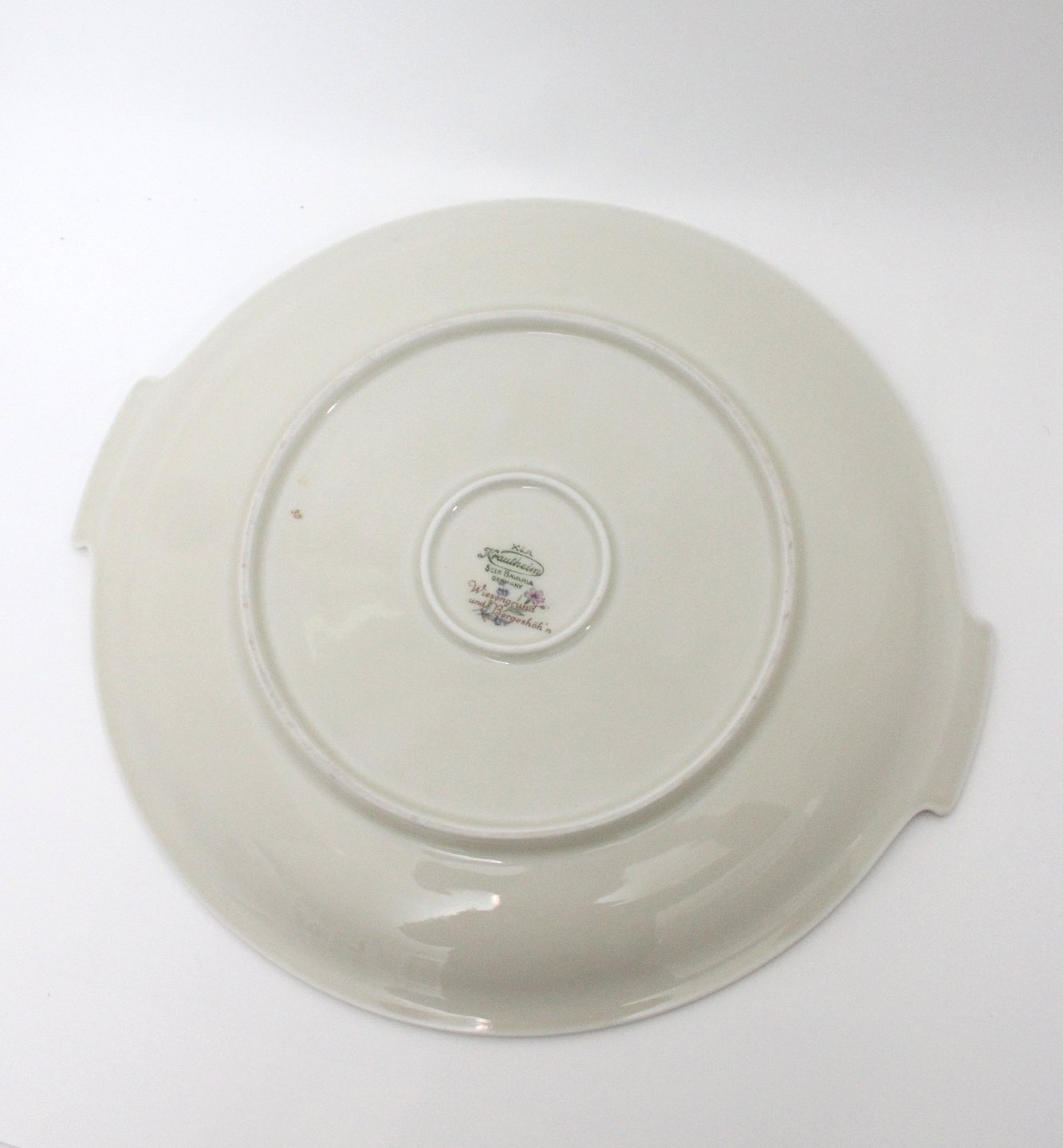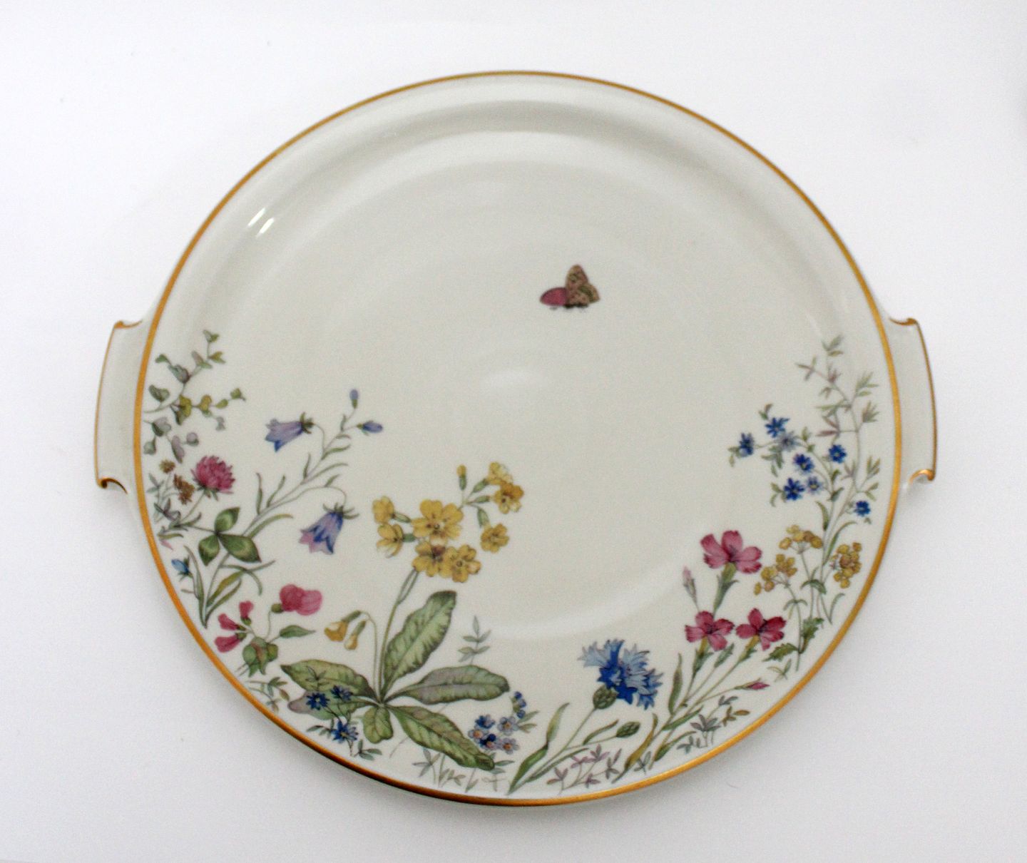 Krautheim, Selb Bavaria, Germany, Danmarks Flora cremet stel med guldkanter motiv Danmarks flora flere forskellige motiver. Rundt fad med hanke. Diameter 28 cm. Længde 31 cm. Pris: 200 kr. stk. Lager: 1