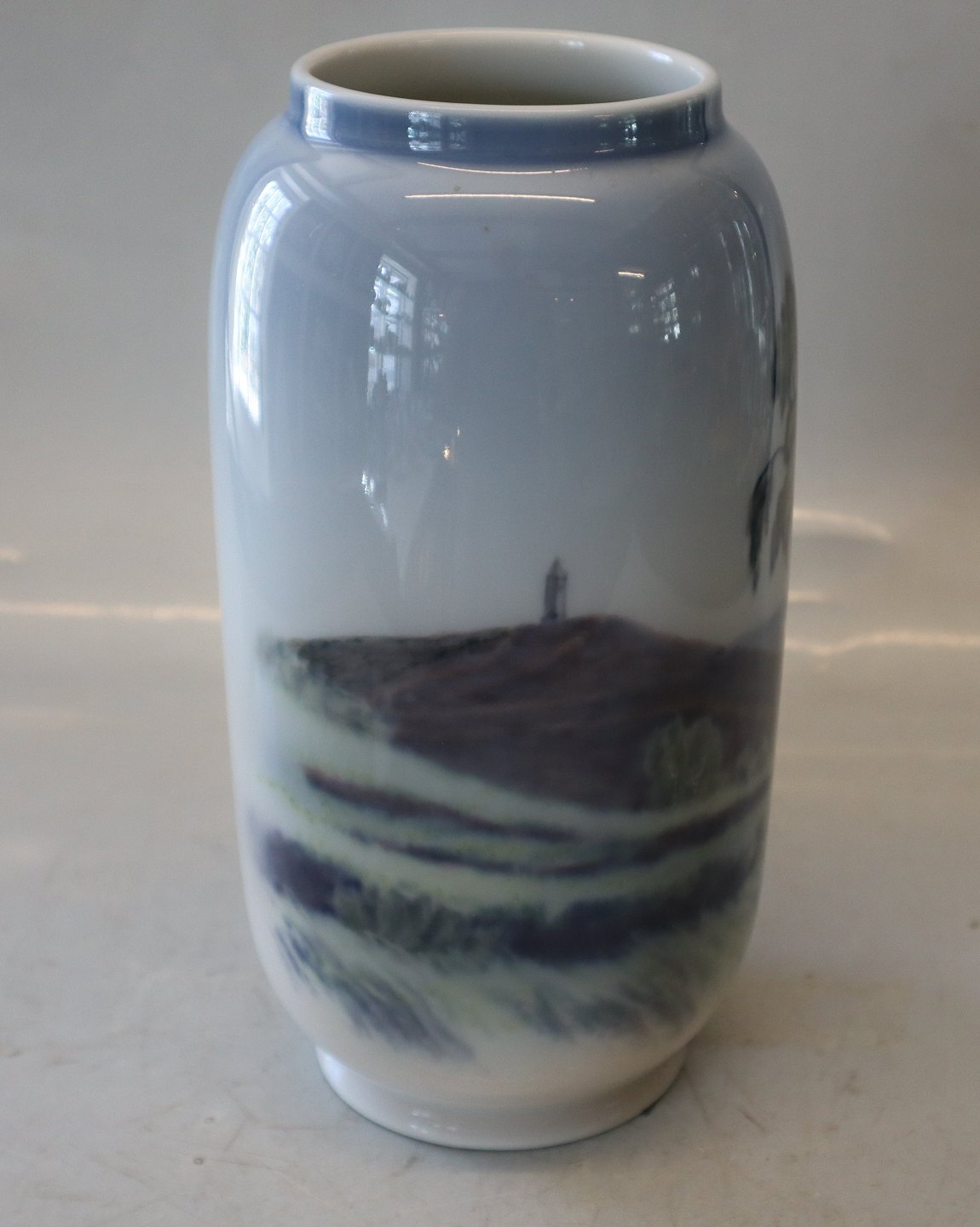 2889-107 Kgl. Vase med tårnet "Himmelbjerget" Silkeborg 21 cm Porcelæn fra Royal Copenhagen I hel og fin stand Händler