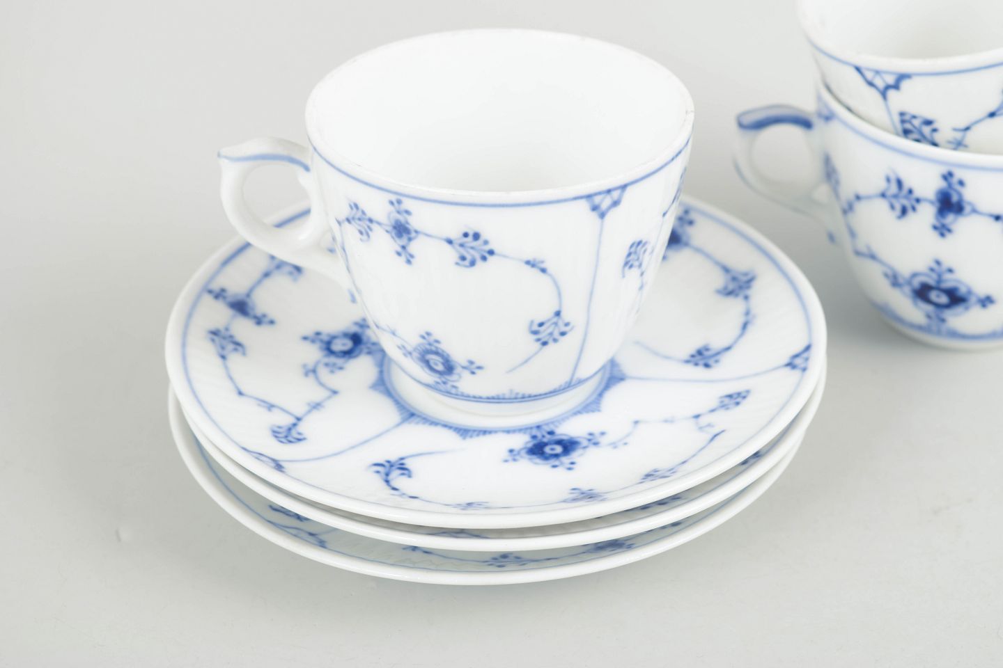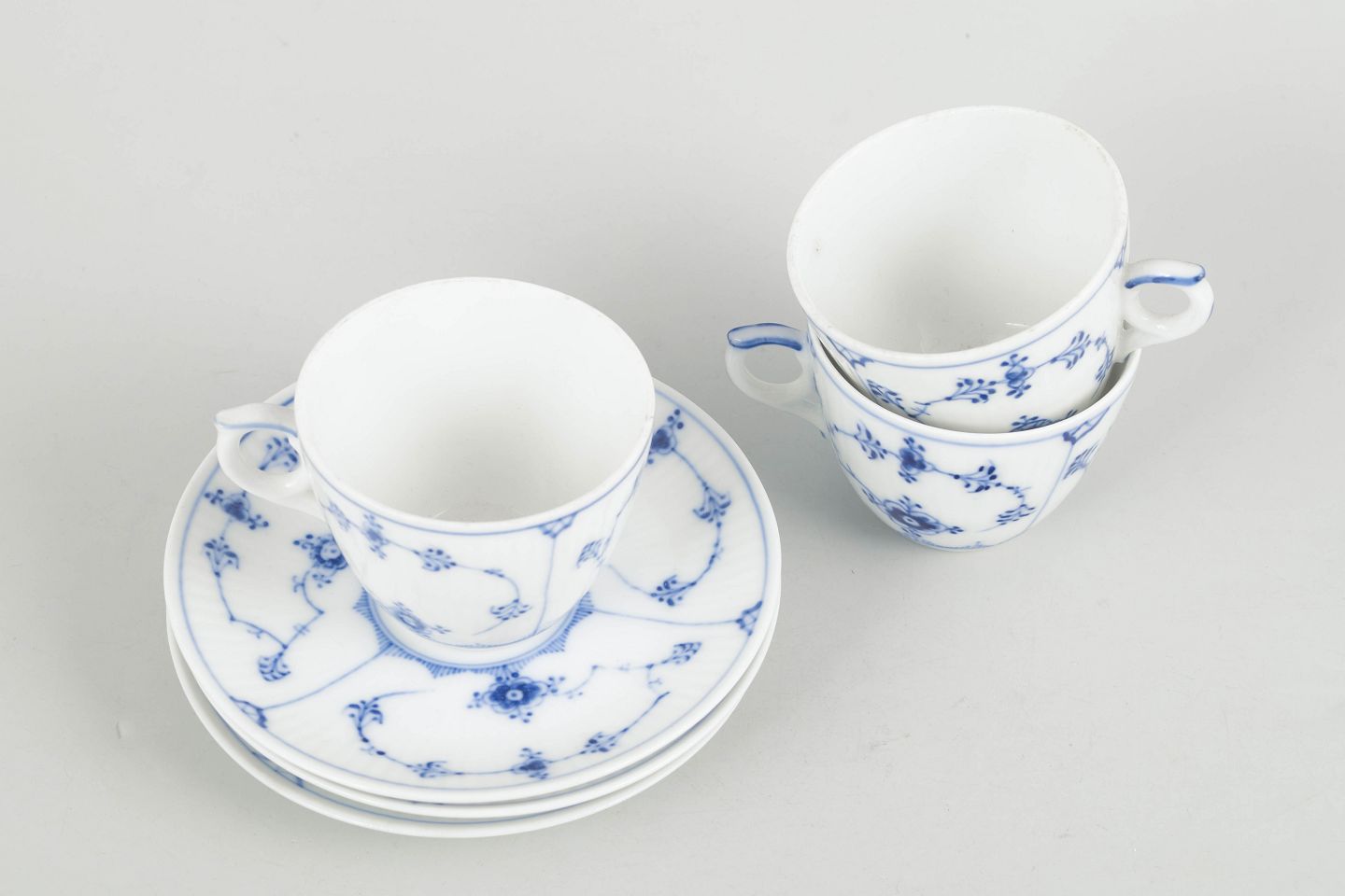 Royal Copenhagen Musselmalet Riflet, sæt af tre kaffekopper med underkopper.Beschreibung:
