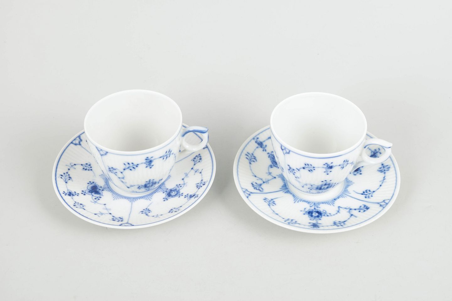 Royal Copenhagen Musselmalet Riflet to kaffekopper med underkopper.Beschreibung: