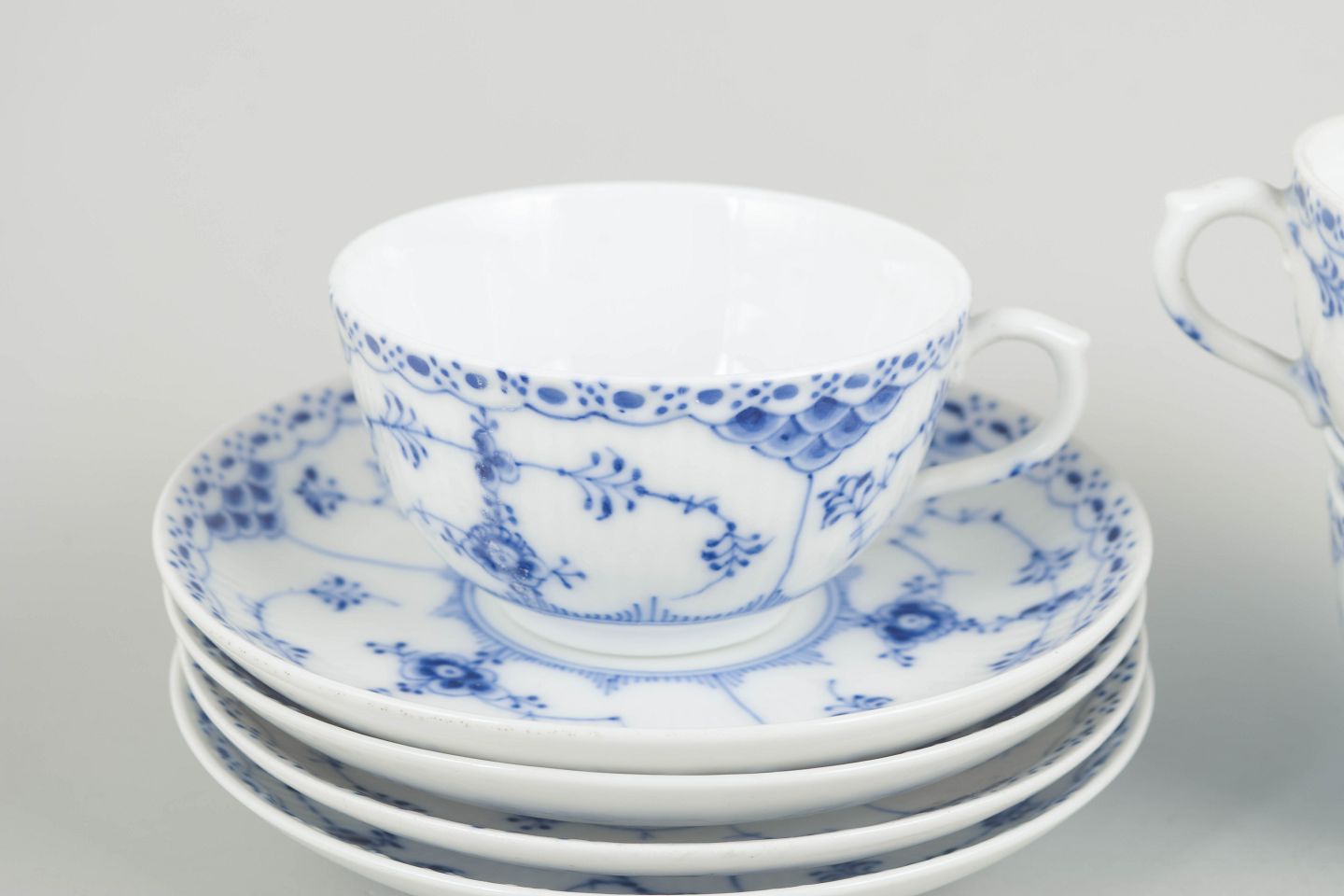 Royal Copenhagen Musselmalet Halvblonde kaffekopper med underkopper, sæt af fire.Beschreibung: