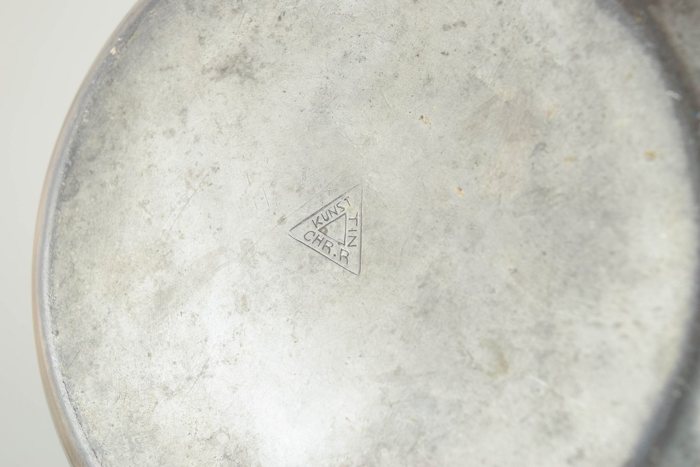 Chr. R. Kunst tin, lågskål med figur.Beschreibung: