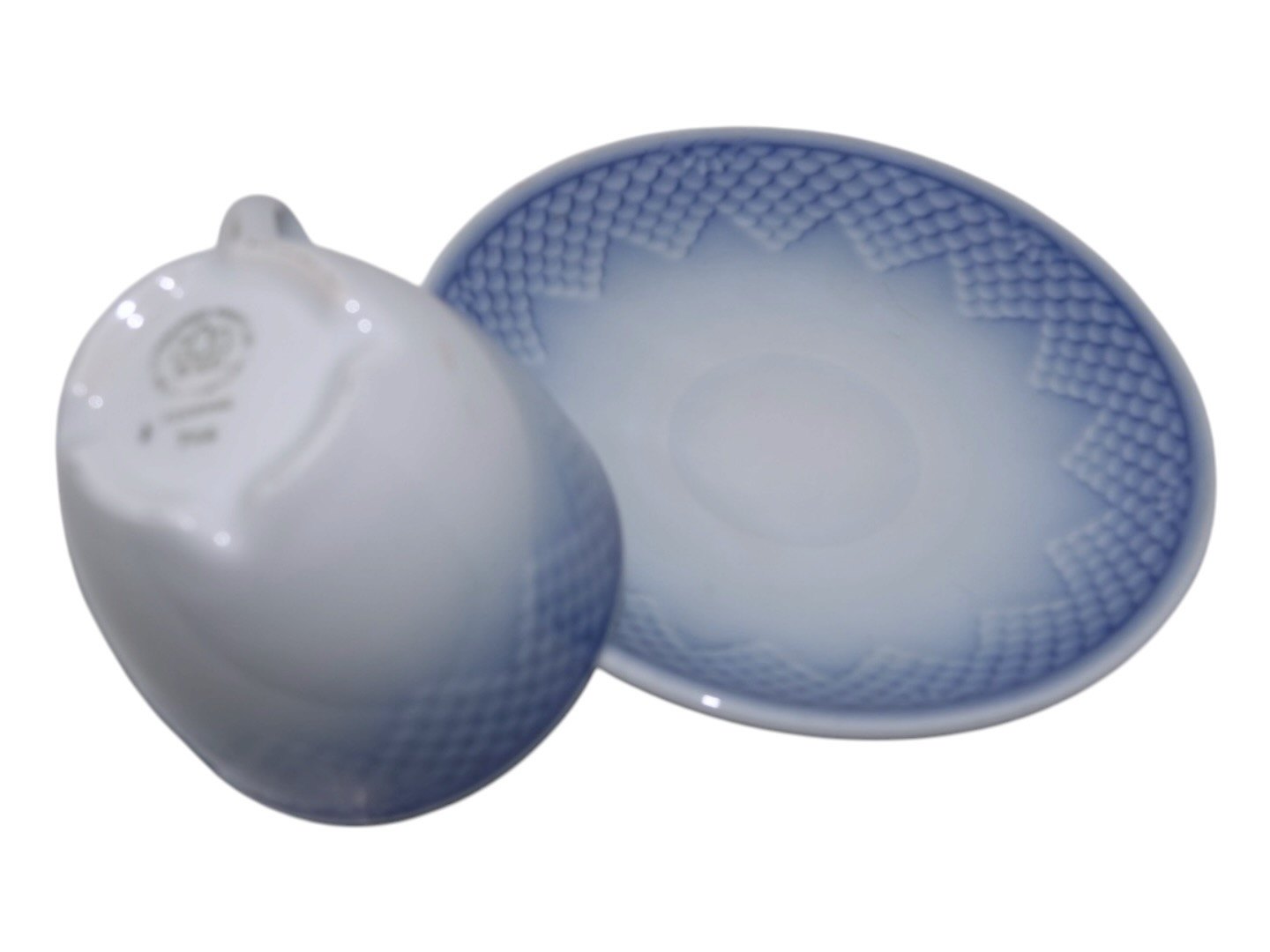 Bing & Grøndahl Blå Tone i tykt jernporcelæn, kaffekop med underkop.Dekorationsnummer 744.