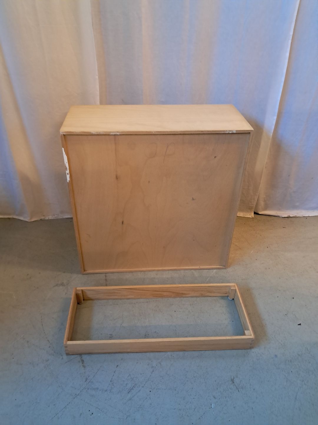 Skab i bøge krydsfiner, fra 2000erne.Det har brugsspor og gaber lidt i venstre hjørne.(se foto)