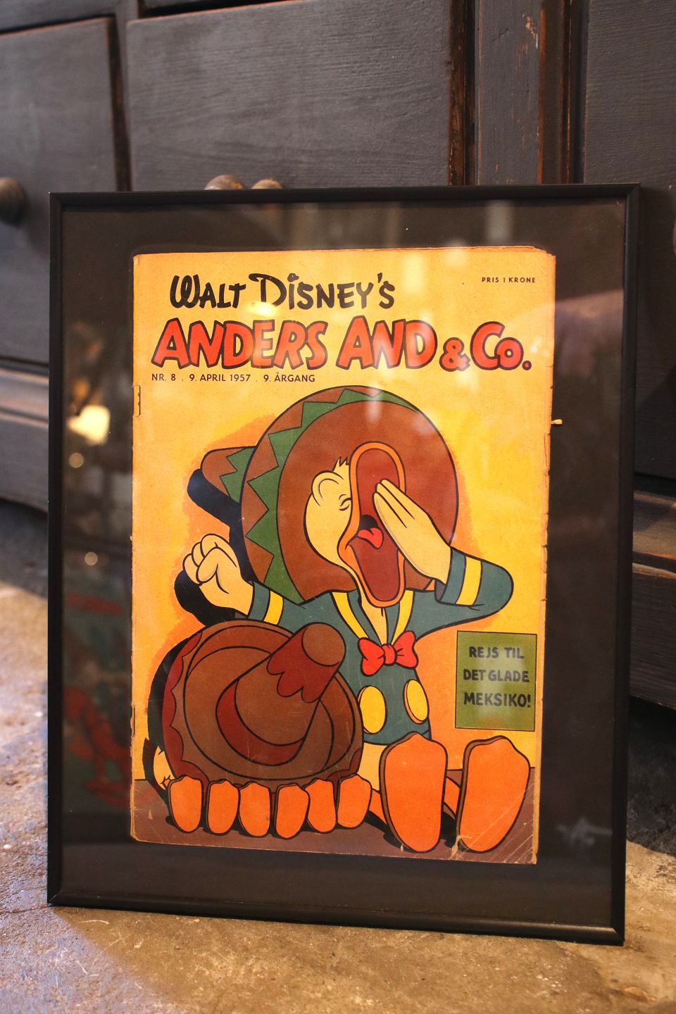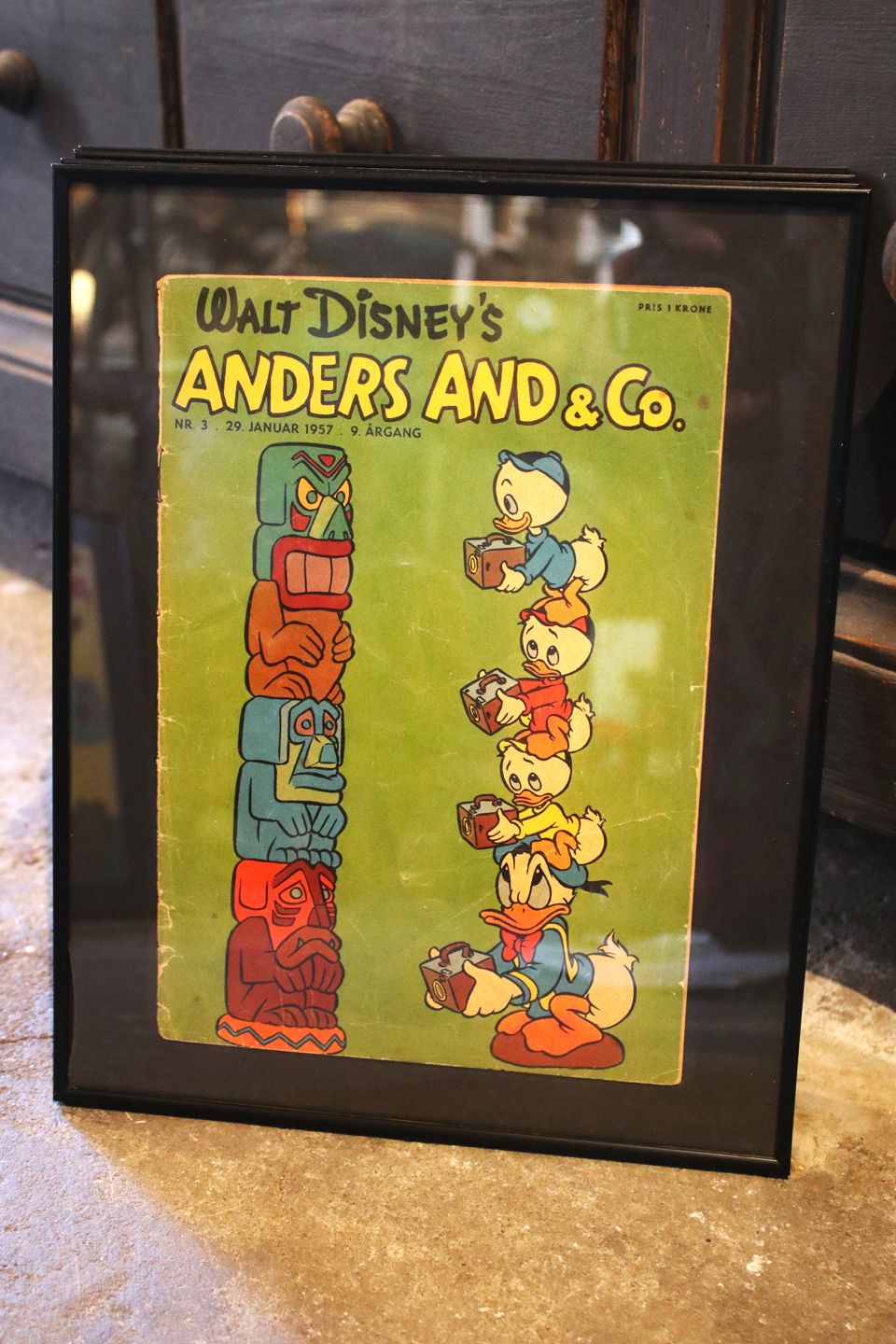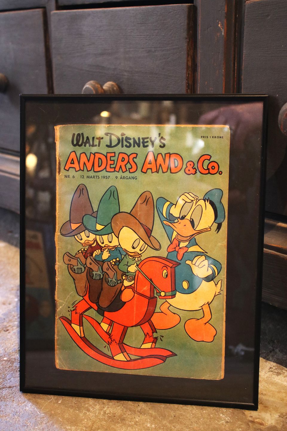 Dekorative , gamle Walt Disney Anders And blade fra årgang 1957 indrammet i sort ramme. 30x24cm...
