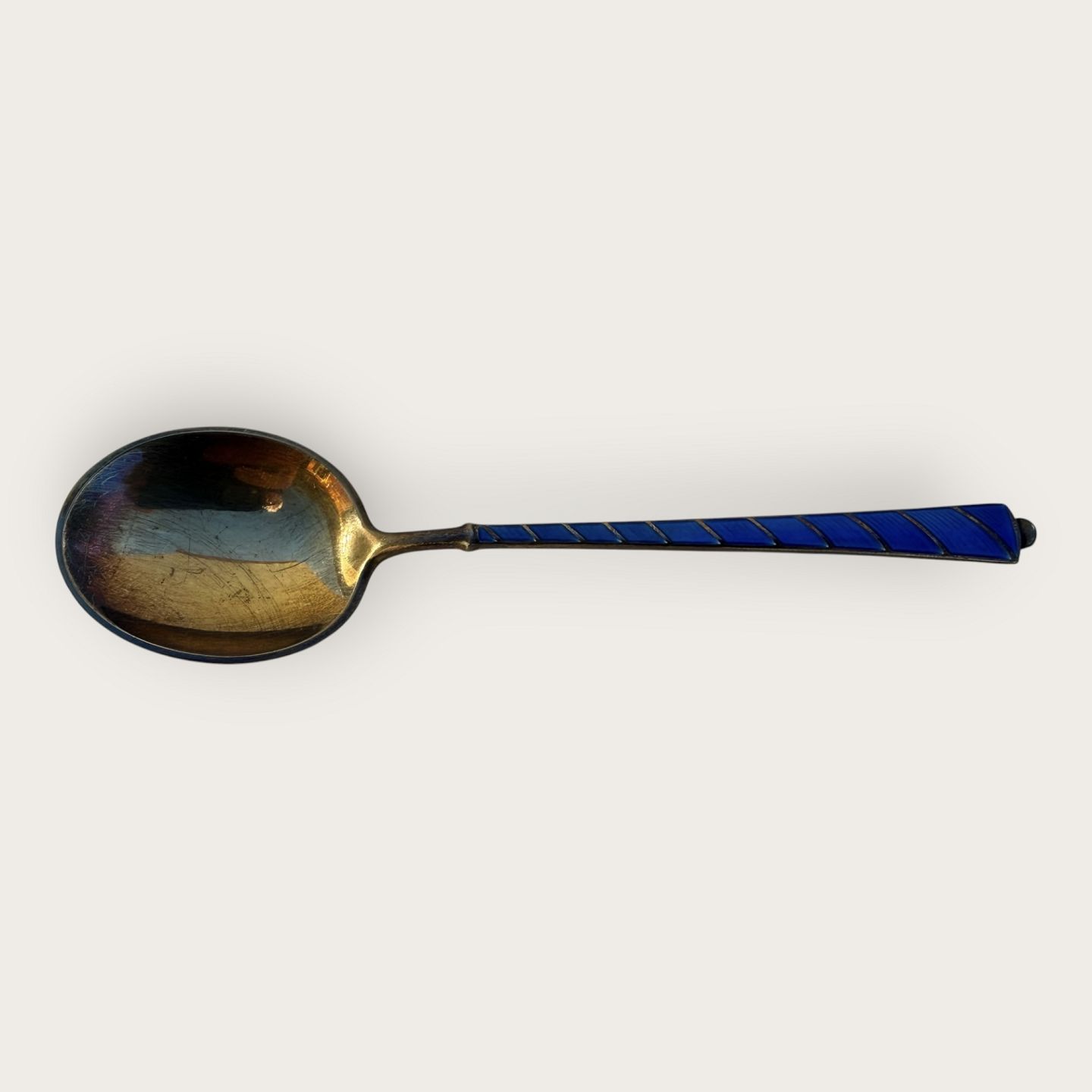 Löffel / Zuckerlöffel, Emaille und vergoldetes Sterlingsilber, gestempelt: Ela Sterling 925S, für Egon Lauridsen, 13 cm lang *Guter Zustand*Lager: 1