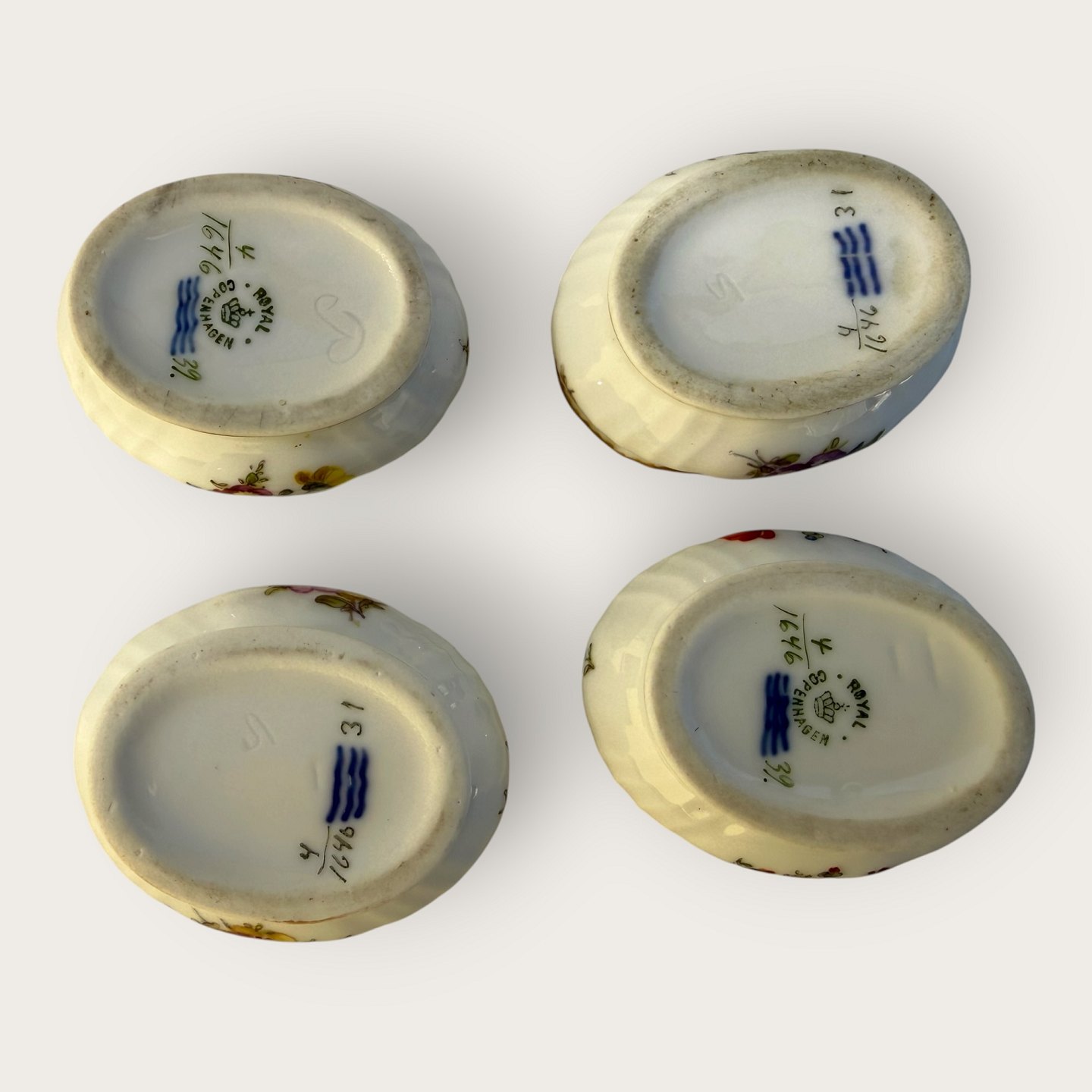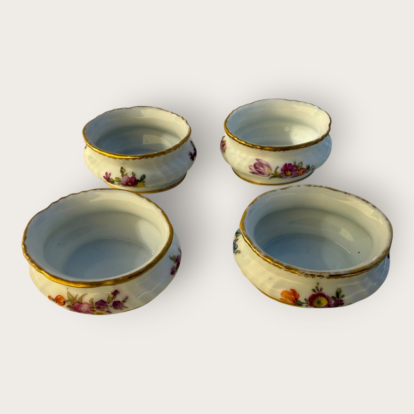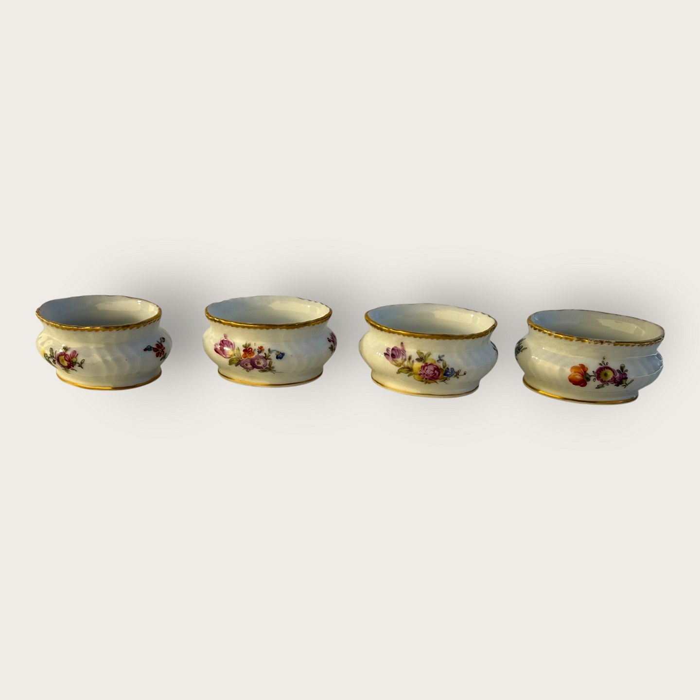 Royal Copenhagen, Vollsächsische Blume, kleine Salzschale, Nr. 4/1646, Maße: 6x3cm *Eines mit leichten Gebrauchsspuren am Goldrand, sonst in gutem Zustand*Lager: 4