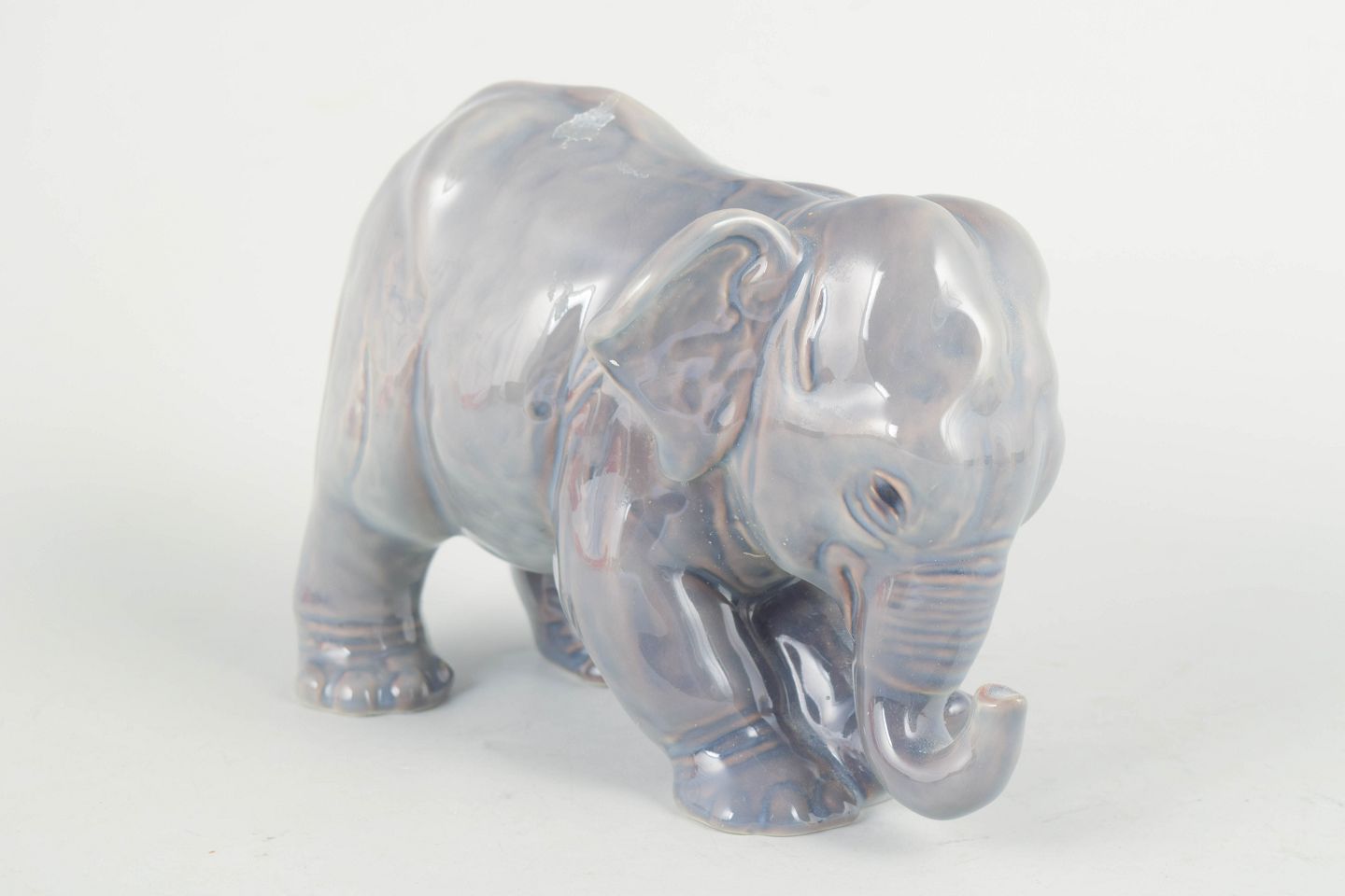 Bing & Grøndahl, elefantunge figur.Naturalistisk udformet elefant i porcelæn model 2575 med blød, iriserende glasur i grå og blålige toner. Fremstillet med fine detaljer i overfladen og markeret som første sortering på bunden.